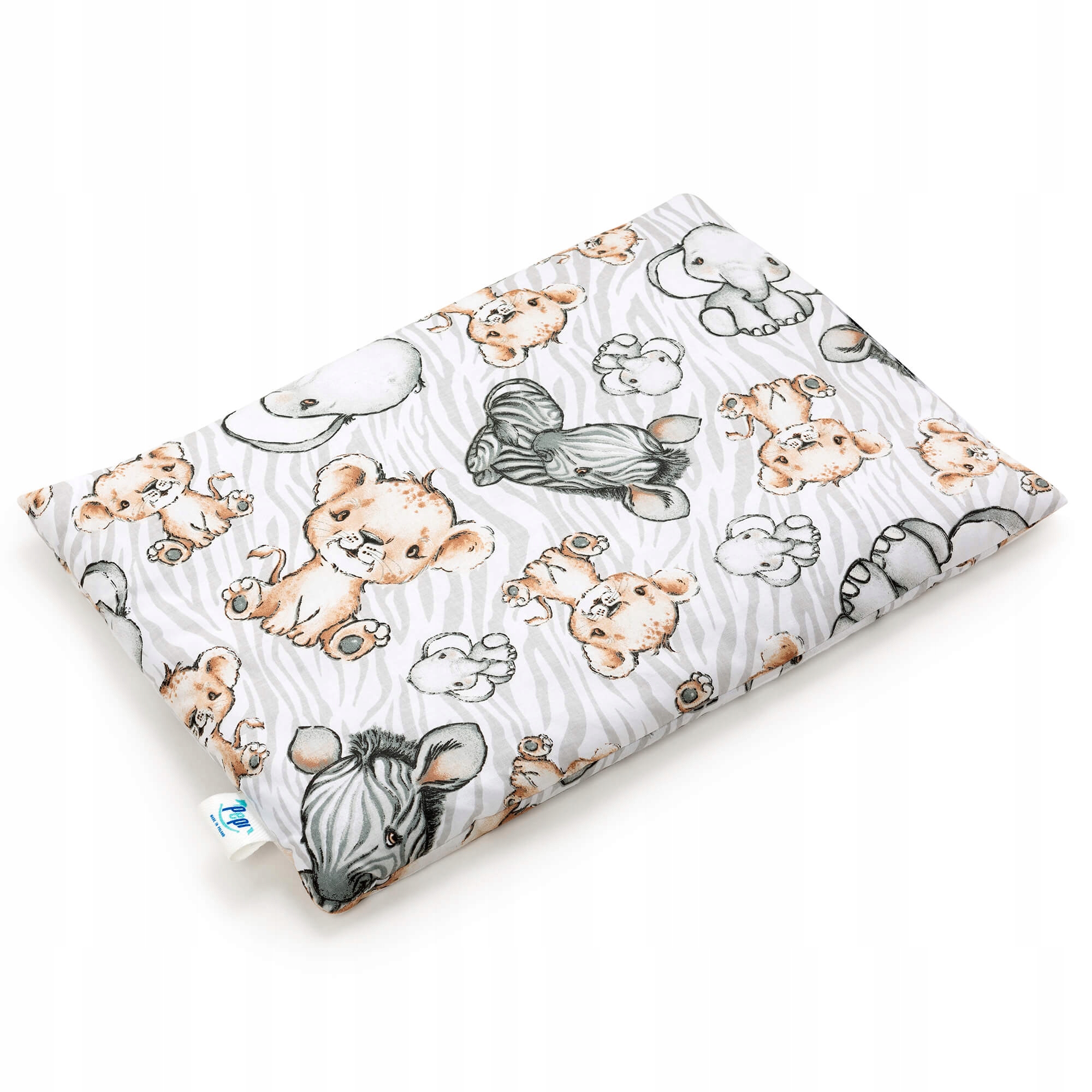 Двостороння плоска подушка з наповнювачем з колекції Safari - найкраще рішення навіть з перших місяців життя дитини. Виготовлений зі 100% бавовни. Ідеально підходить для сну та прогулянок.