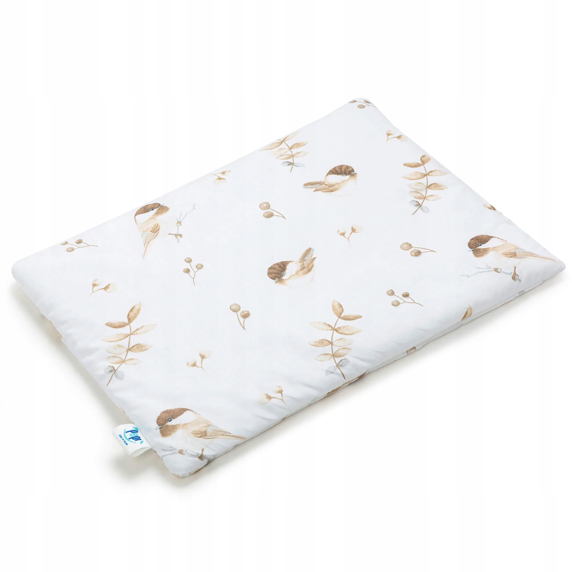 Двостороння плоска подушка з наповнювачем з колекції LOVELY BIRD - найкраще рішення навіть з перших місяців життя дитини. Виготовлений зі 100% бавовни. Ідеально підходить для сну та прогулянок.