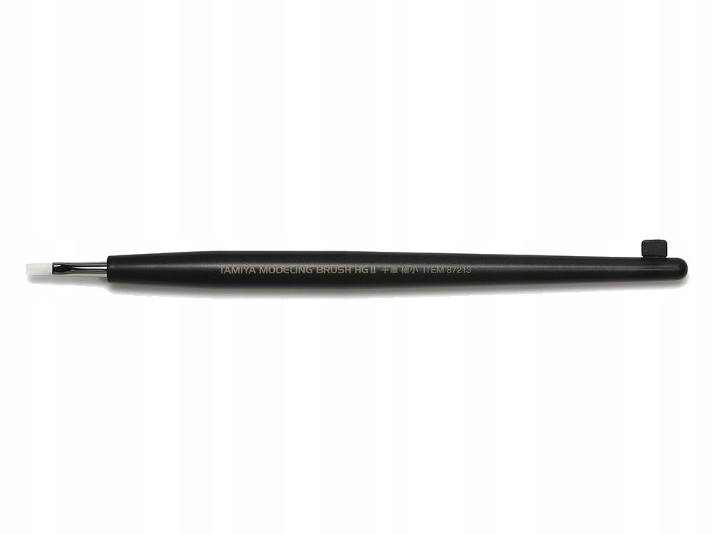 Оновлена версія плоскої кисті Tamiya HG (High-Grade). Було внесено наступні зміни - щетина з PBT смоли (замість кінського волосу) і нова стійка до розчинників пластикова ручка з наконечником, що запобігає скочуванню.