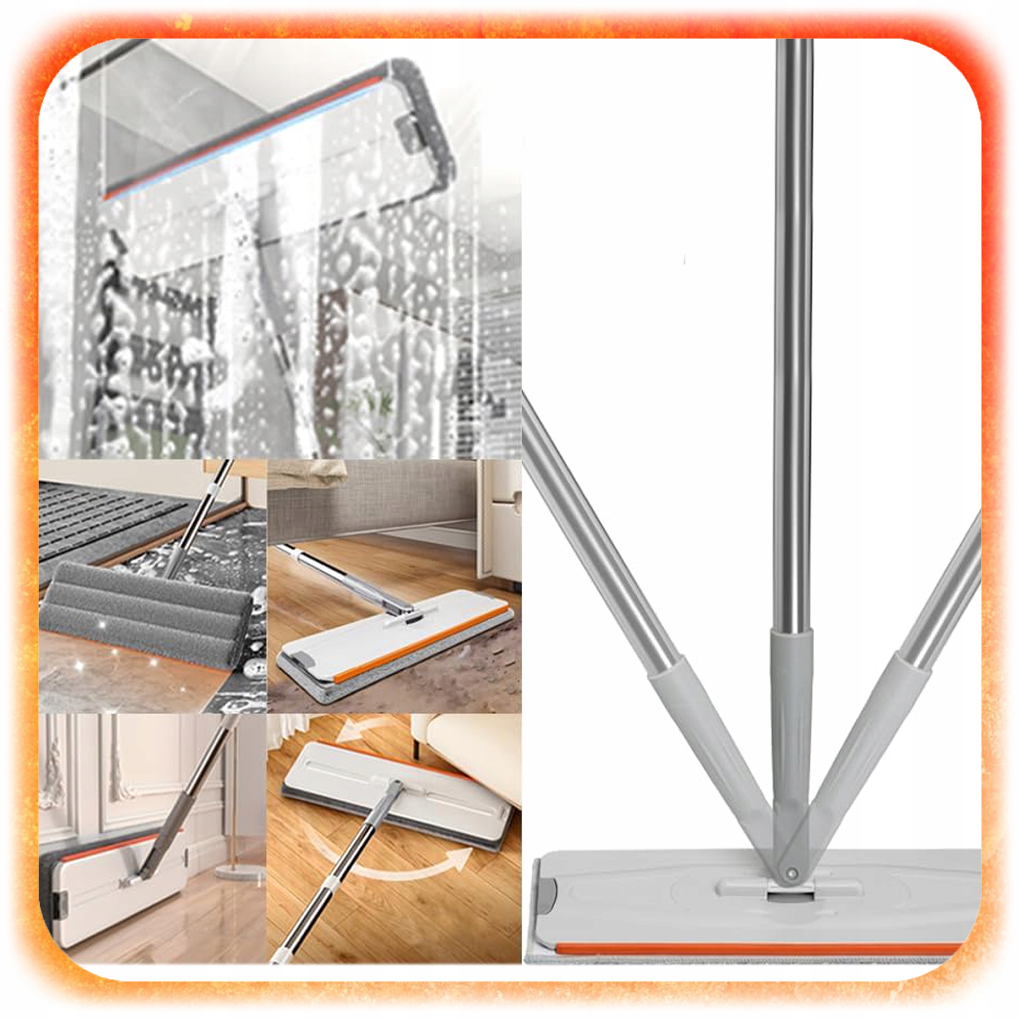 Плоска, гнучка головка швабри обертається на 360°, досягаючи навіть важкодоступних місць:
