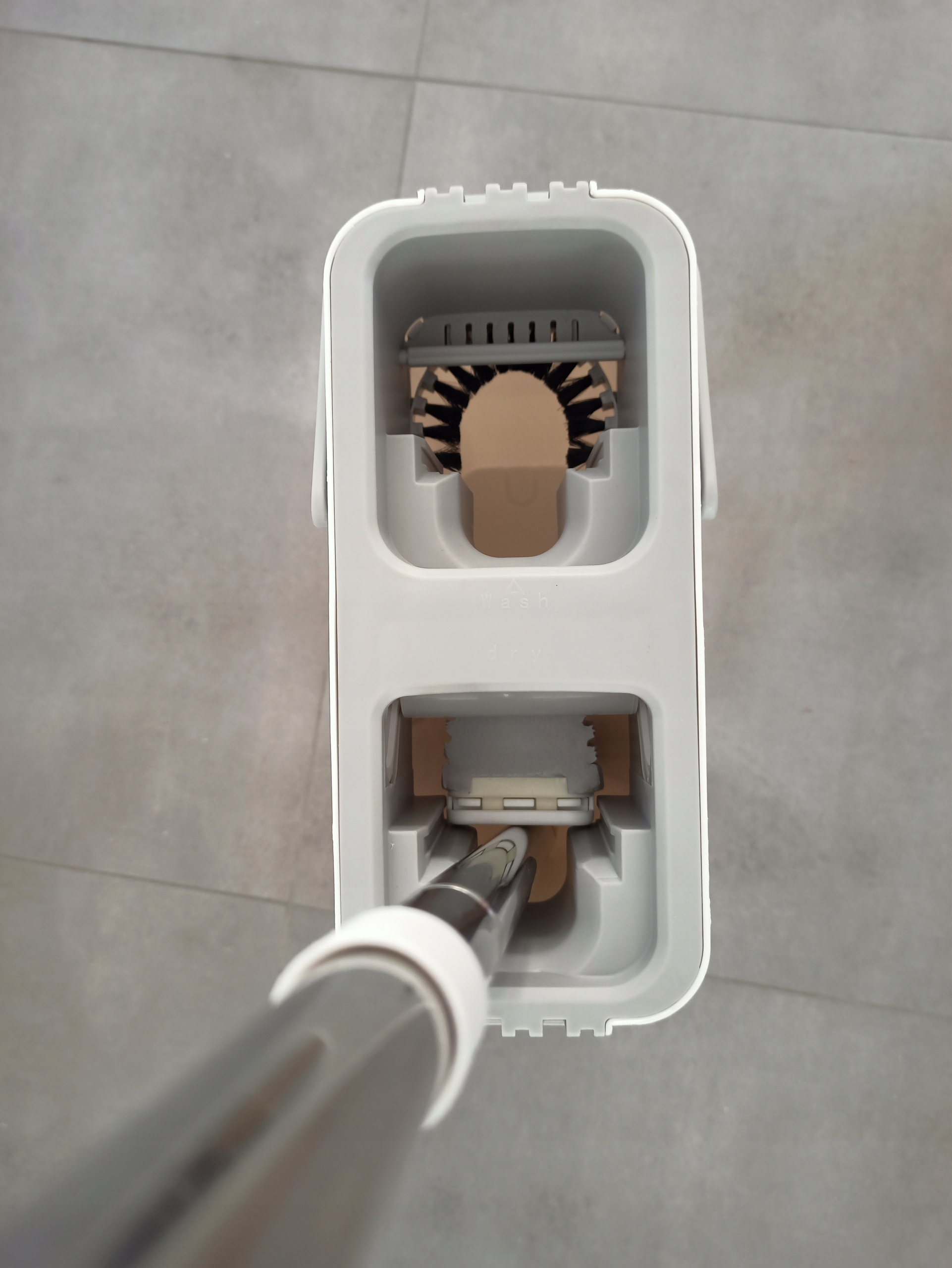 sponge mop with a squeezer and a two -chamber bucket h1> - squeezing a mop insert from water is possible without dirty and soaking hands