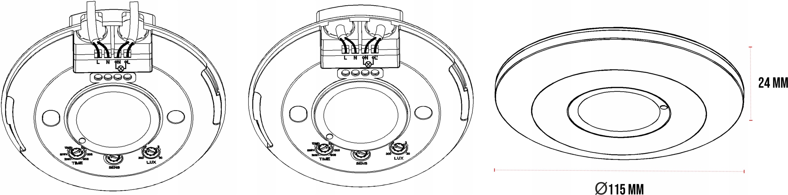 - Регулювання часу ввімкнення: залежно від потреби його можна встановити в діапазоні від 10 с +/- Від 3 с до 15 хв +/-2 хв. Таймер скидається кожного разу, коли пристрій виявляє рух