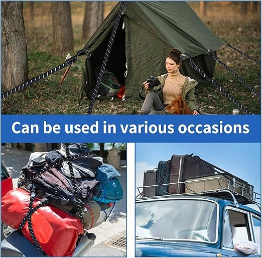 - Поліпшено тривалу гнучкість: шнури банджі виготовлені з найвищої якості латексних та оксфордських волокон, що робить їх набагато сильнішими та гнучкішими, ніж звичайні ударні шнури. Вони мають в 1,5 рази більше розтягування та сильне відображення, а нейлонова пряжа надворі має хорошу стійкість до погодних умов, а це означає, що вони можуть бути використані тривалий час без деформацій. Відрегулюйте від 50 см до 100 см до різної довжини залежно від розміру об'єкта. Ці міцні посилання на банджі дуже гнучкі та підтримують і сумісні з мішками будь -яких розмірів та ваги. Сумісні з усіма велосипедами, автомобілями, коробками, стовбуром, кемпінгом, садами, білизняними струнами. Каное, забезпечення складів, кемпінгових брезентів та багатьох інших. Крім того, вони також корисні для підтримки багажу, інструментів та інших речей на місці.