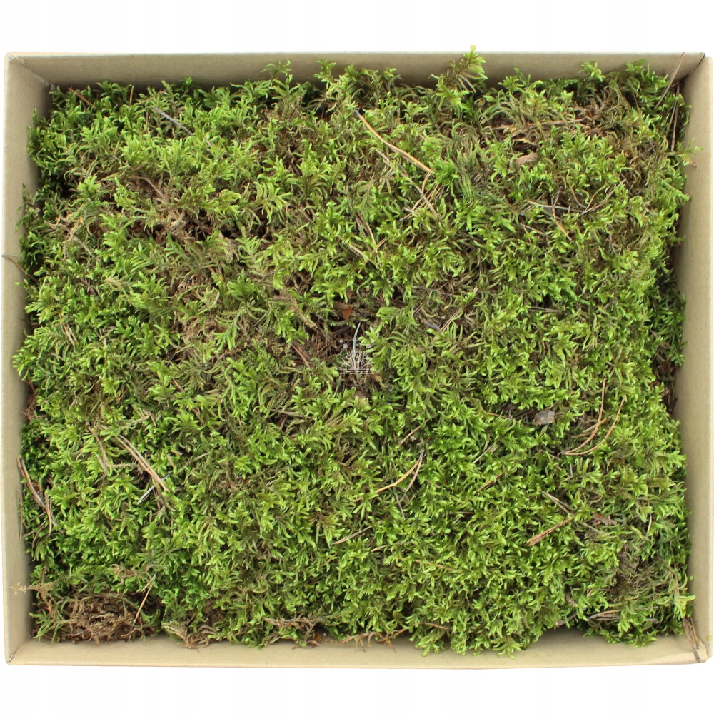 Живий плоский мох натурального зеленого кольору. Якісний мох, з помірною кількістю домішок у структурі. Товар упакований в картонну коробку в декілька шарів, естетично оформлений. Після видалення моху з ящика він готовий до роботи і не потребує жодної обробки чи обрізки. Урожайність одного ящика плоского моху до 0,4 м2 (до 63х63см). Мох у висушеному вигляді, після поливу, збризкування та обприскування водою, повертається до первісної форми, набуває насичених кольорів і оживає після зимової сплячки. Це ідеальне рішення для лісу в банці, саду, тераріуму, квіткових горщиків або надгробків. Використовувати мох потрібно в темному і вологому місці, що забезпечить оптимальні умови для росту. Живий мох росте, але це повільний процес, тому його ріст триває багато років. Як і будь-яку живу рослину, її необхідно регулярно обприскувати водою.