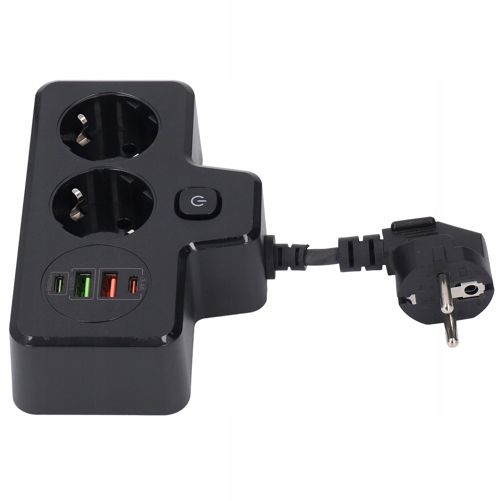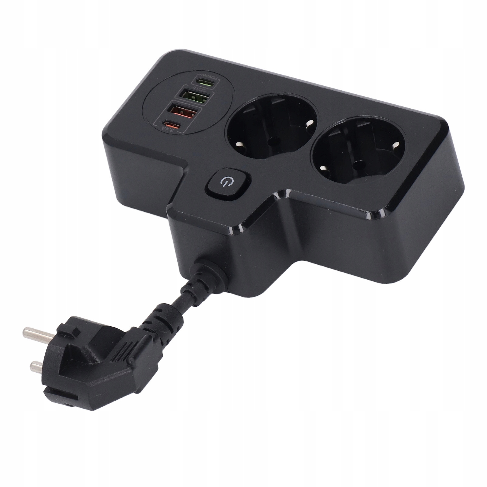 - Гніздо: 2 два отвори, 2 порти USB і 2 порти швидкого заряджання USB C