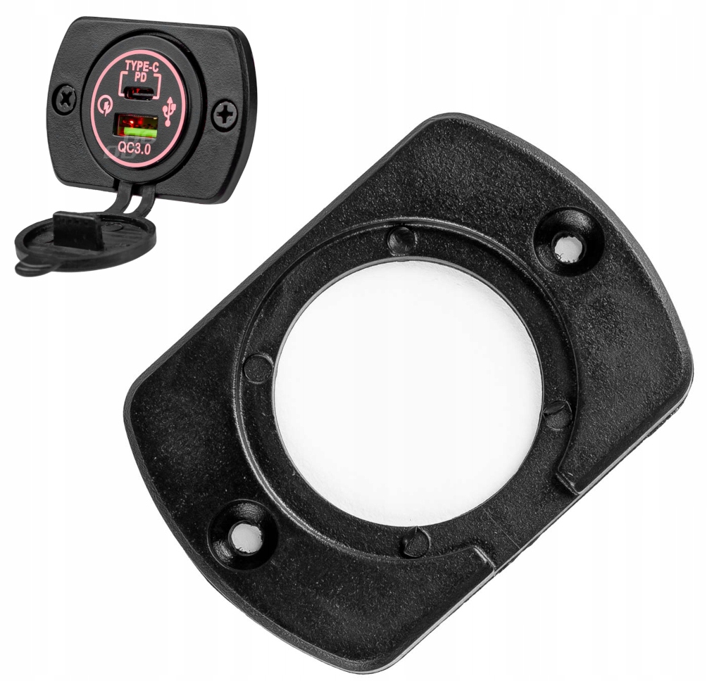 Плоска панельна кришка з арочними сторонами для встановлення круглого вольтметра, зарядного пристрою USB або гнізда прикурювача. Рама дозволяє встановити 1 компонент.