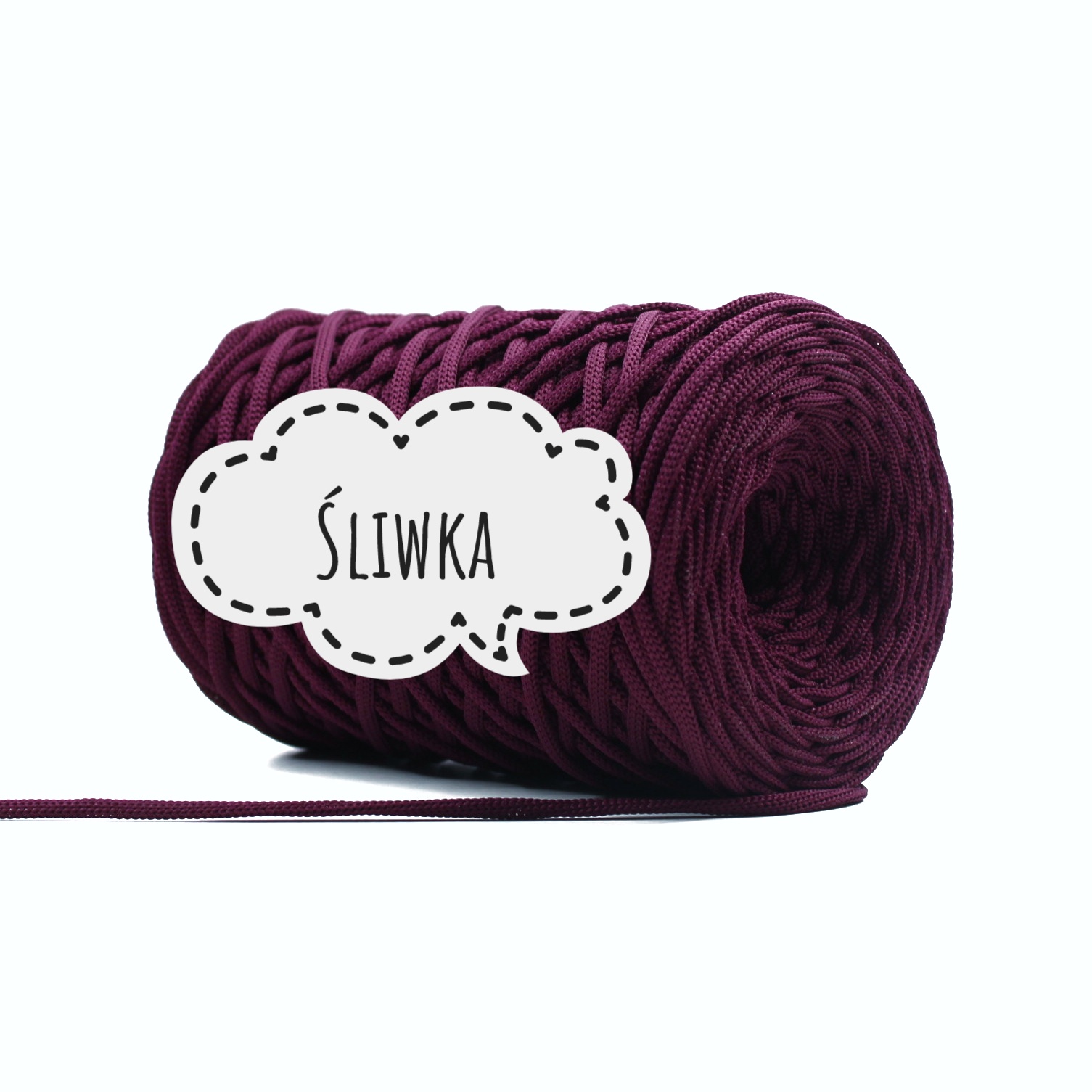 Найкраща плоска поліестерова струна 3MM PIMOtki - PLUM польського виробництва, яка часто замінює популярні бавовняні струни. Завдяки своїм властивостям він ідеально підходить для сумок, кошиків і килимів. Він легкий, м'який і в'язати гачком приємно. Його найбільші переваги – водонепроникність і непорушність.
