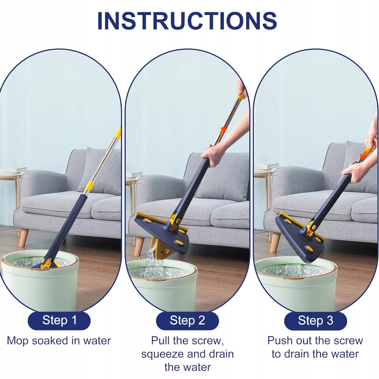 На відміну від швабри та відра з наборами для їжі, ця швабра для очищення підлоги та стін оснащена розсувною автоматичною харчовою системою. Просто потягніть ручку вгору, і головка швабри автоматично закривається і зважує тканину. Швидка трикутна швабра легко долає найскладніші куточки та кришки у вашому домі.