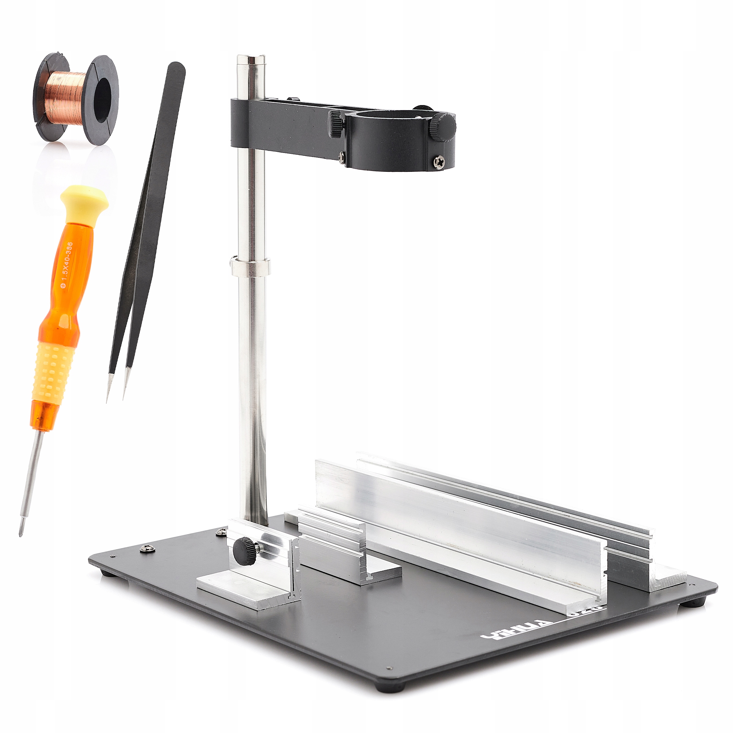 Yihua 628 - незамінний елемент будь-якої служби, він додає багато комфорту, завдяки тримачу колби з гарячим повітрям ми маємо вільну руку, що дуже важливо під час роботи. У поєднанні з металевою основою та металевими магнітними тримачами двох розмірів це ідеальне робоче місце.