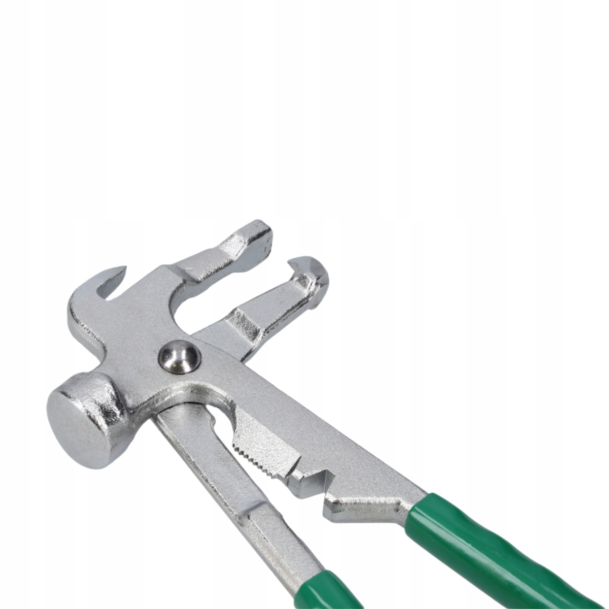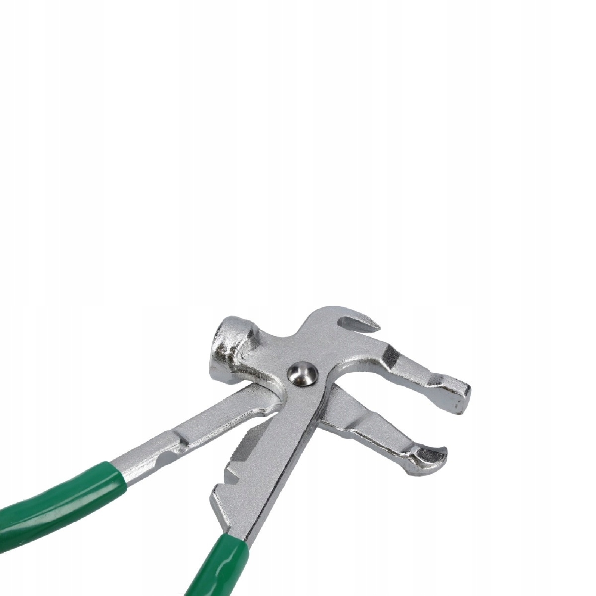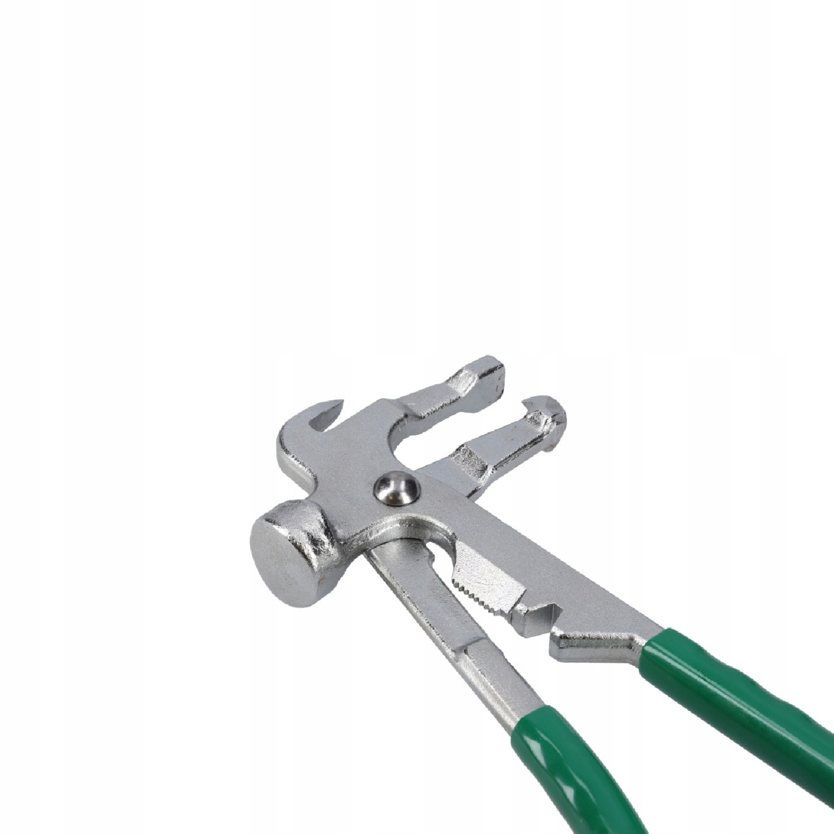 Плоскогубці – це інструмент, призначений для збирання та розбирання тягарців із сталевого обода. Щипці виготовлені з високоякісної сталі з зеленим гумовим покриттям на ручці. Щипці мають плоскогубці для демонтажу гир, молоток для складання гир, лезо для розрізання склеєних гир і важіль для згинання пружини гир.