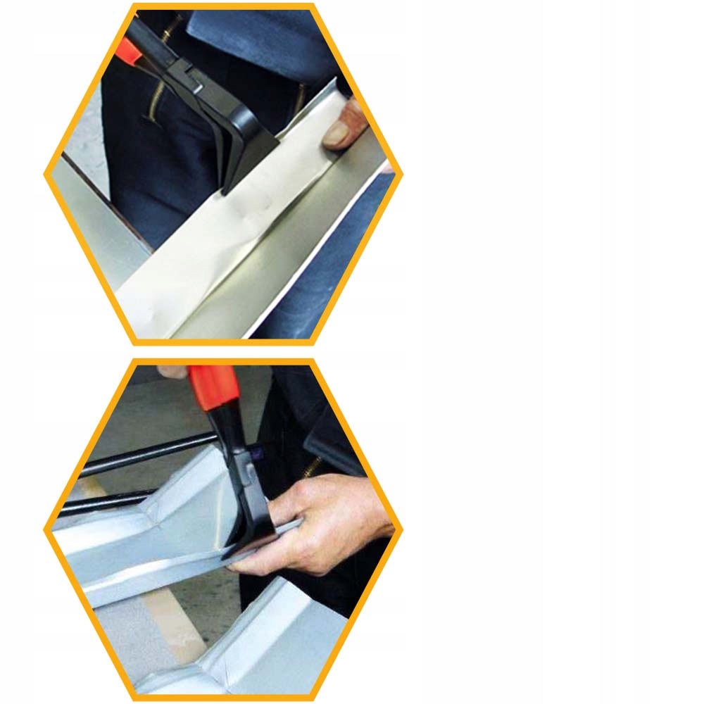 У своїй конструкції вони мають колінний суглоб , який легко адаптується до товщини та форми листового металу та гарантує точний і сильний зчеплення .
