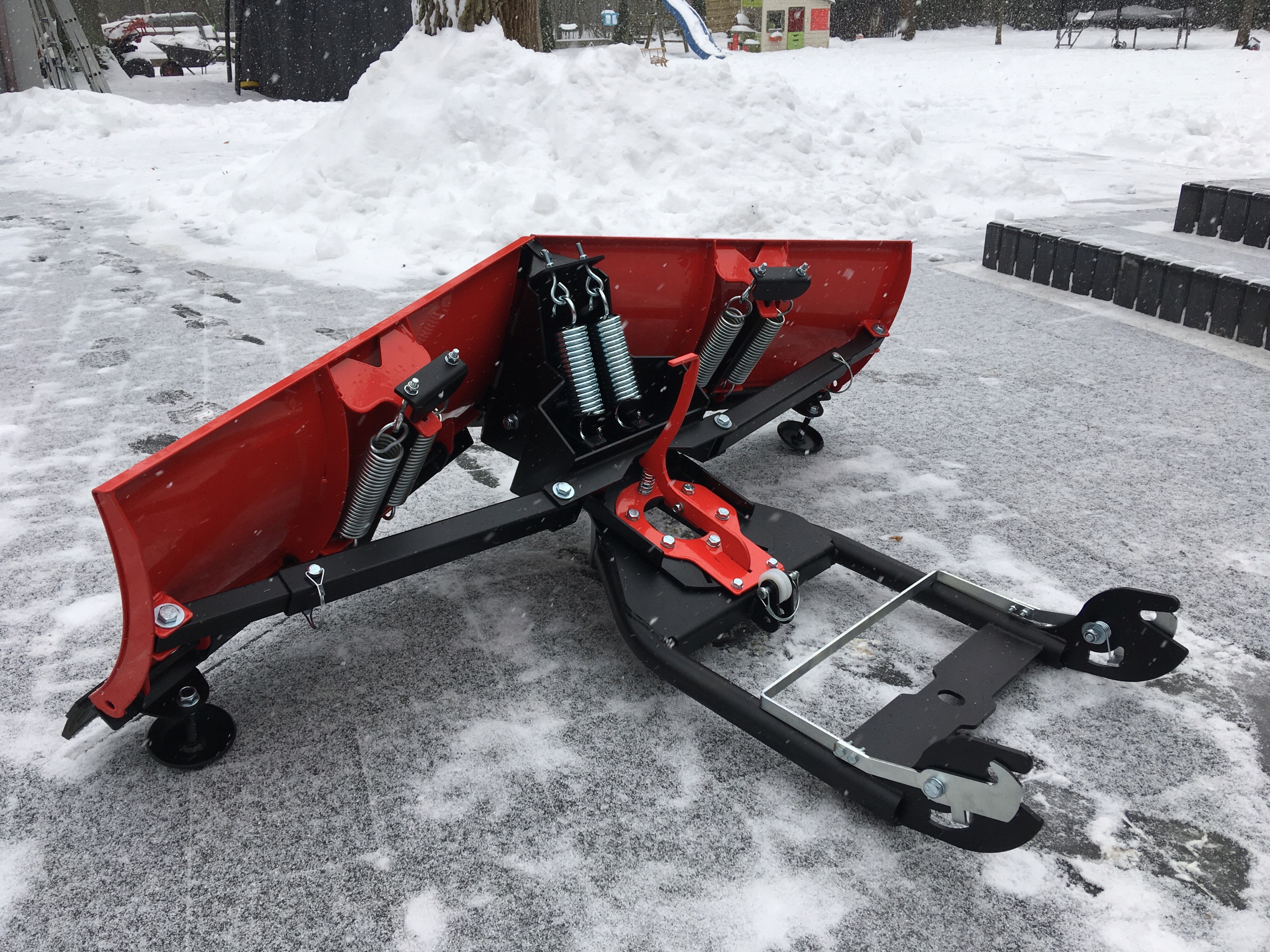 Плуги характеризуються дуже швидким монтажем і розбиранням завдяки системі Auto-Click. Плуг автоматично фіксується на монтажній пластині, і немає необхідності додатково закріплювати кронштейн шпильками, гвинтами тощо. Нововведенням у цій моделі плуга є відвал типу «V», який має багато варіантів налаштування та може розкидати сніг на землю. зліва і справа, всередині або зовні. Як і традиційна настройка, тобто лезо пряме.