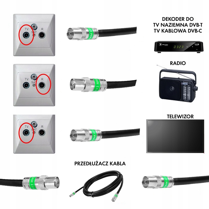Високоякісна готова -вироблена антенна кабель (концентричне, телебачення) з простою розеткою антени (жіноча телевізійна штепсельна штепсель) -простий (чоловічий телевізор) антенна штепсельна премія!