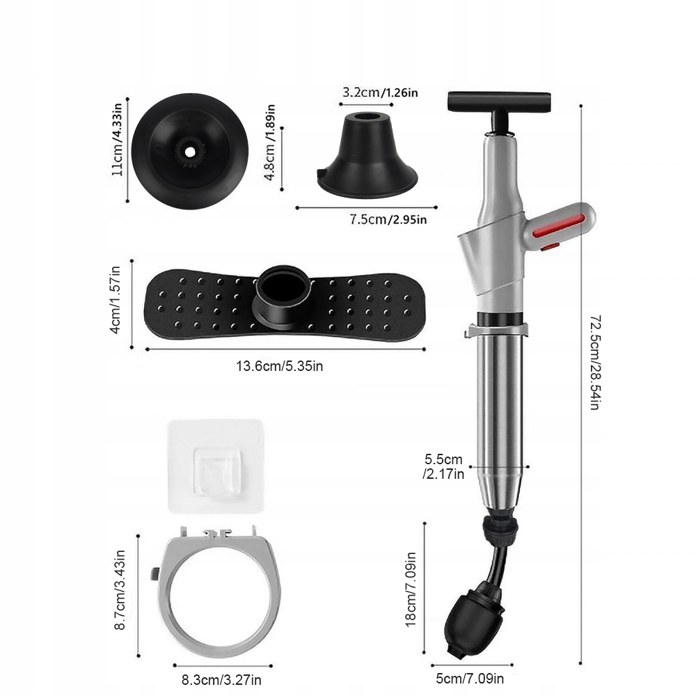 - Легкий у використанні, просто надуйте повітряний мішок і вставте його в заблоковану область, а потім натисніть кнопку повітря, щоб швидко очистити найстійкіші засмічення в каналізації.