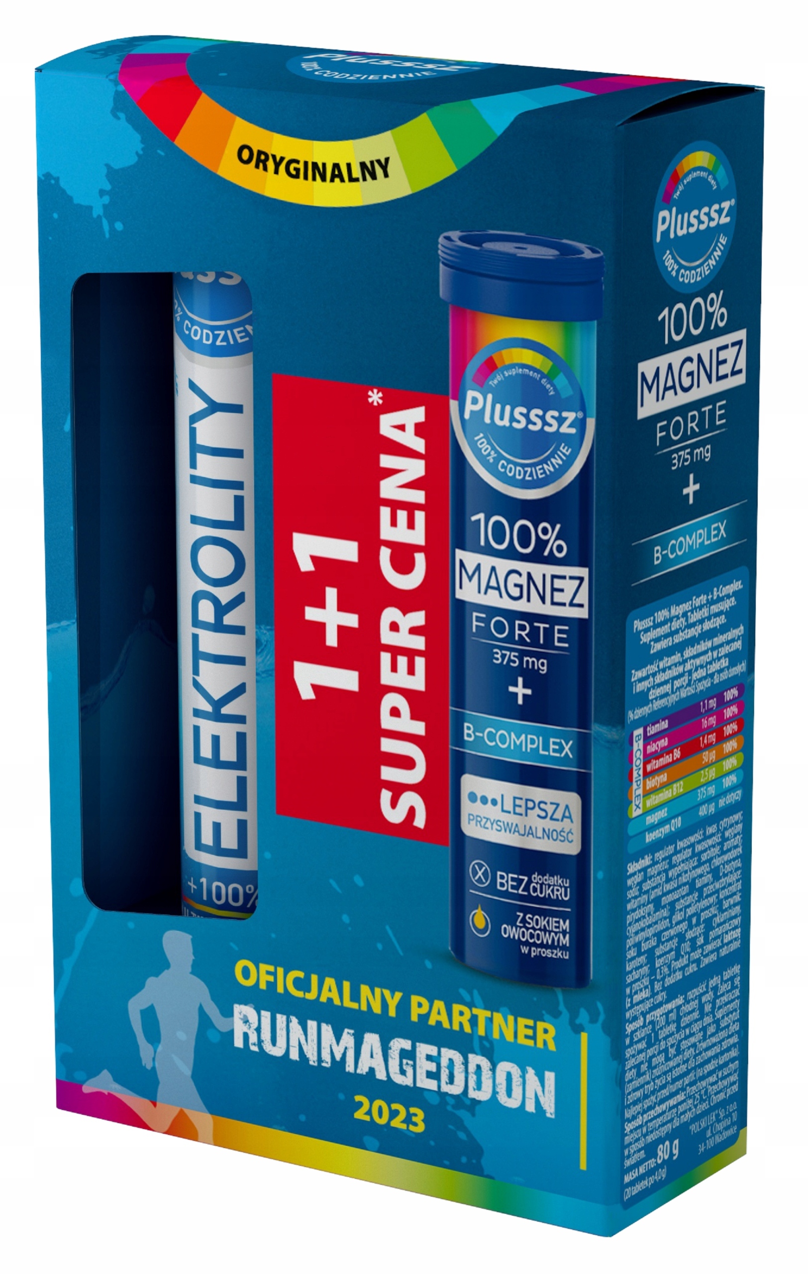 Plusssz 100% Magnesium Forte + B-complex – це добавка, яка заповнює дефіцит магнію та вітамінів групи B у раціоні дорослих. Рекомендується при стані втоми та втоми, у стресових ситуаціях та людям, які вживають велику кількість кави та чаю.