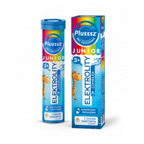 Plusssz Junior – продукт, призначений для дітей старше 3 років та дорослих. Містить кальцій і вітамін D3, речовини, необхідні для правильного розвитку і росту дітей. Добавка у формі шипучих таблеток зі смаком лісових плодів. Продукт без додавання цукру.