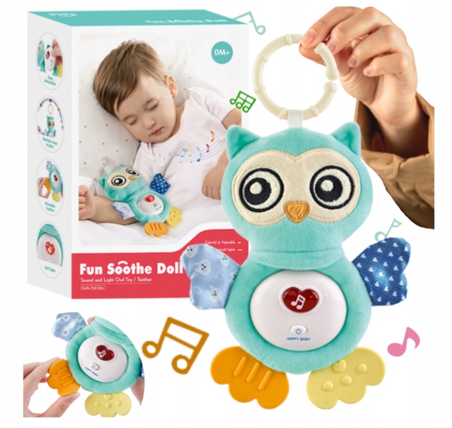 PLUSZOWA SÓWKA USYPIANKA SZUMIĄCA SENSORYCZNA SOWA PLUSZAK DLA NIEMOWLĄT