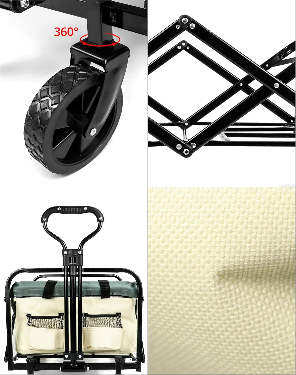 ✅ Складана коляска має міцну конструкцію зі сталевих труб з порошковим покриттям, що дозволяє їй витримувати навантаження до 80 кг. Ідеально підходить для фестивалів, шопінгу, подорожей чи інших подій, де потрібно перевозити багато речей.