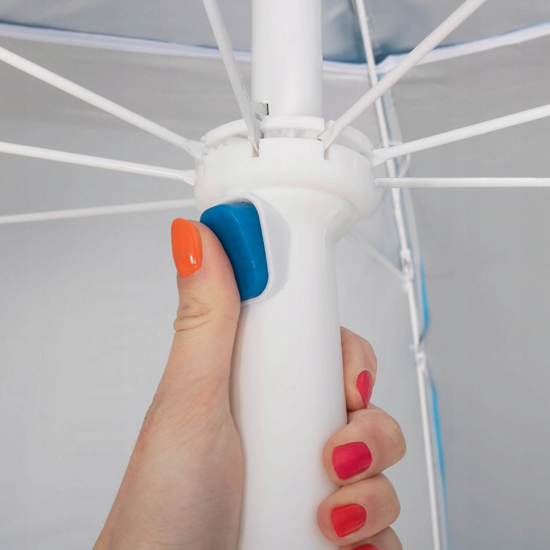 umbrella дуже просто , і в той же час інтуїтивно зрозумілий . Після відпочинку, щоб скласти його, просто натисніть синій замок, а потім він складе до невеликого розміру .