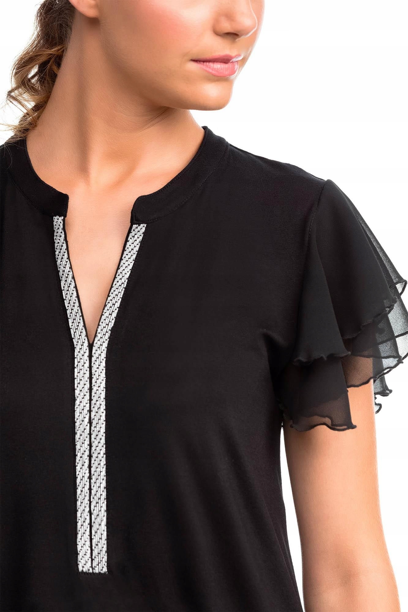 Одноколірне жіноче плаття з короткими рукавами, рюшем, з воланом і декоративним V-подібним вирізом. Сукня виготовлена з високоякісного віскозного трикотажу домішка еластану. Jersey Viscoza характеризується високою поглинальністю, добре пропускає повітря, м'який і приємний на дотик, а еластан забезпечує кращу еластичність трикотажу.