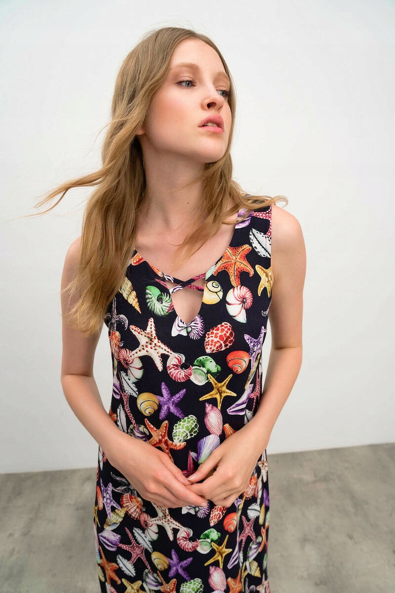 Елегантне жіноче плаття з малюнком на бретелях з круглим вирізом, все, що потрібно жінці в спекотні літні дні. Сукня виготовлена з високоякісного трикотажу віскози з еластаном. Трикотаж Viscoza характеризується високою поглинальністю, добре пропускає повітря, м'який і приємний на дотик, а еластан забезпечує кращу еластичність тканини.