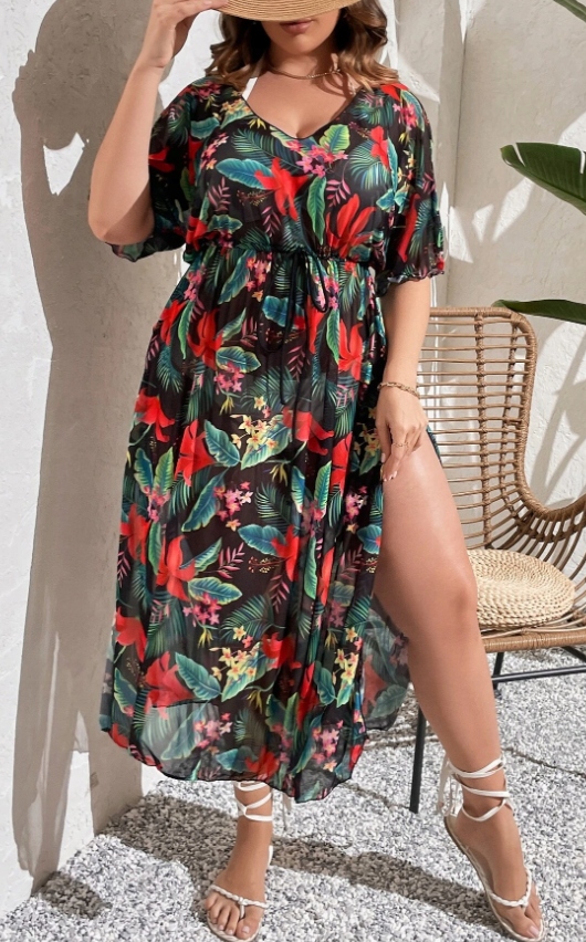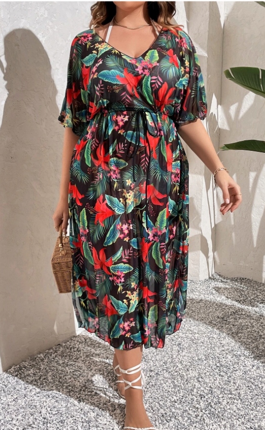 ПЛЯЖНА ТУНІКА БОЛЬШОГО РОЗМІРУ З ЛІТНІМ ВИЗІЛЮКОМ, 46 ГОЛОВ