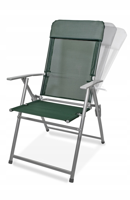 Представлене розкладне крісло має зручні підлокітники і можливість регулювати положення сидіння. Міцна металева конструкція робить його стабільним і довговічним. Крісло покрите синтетичним матеріалом, який не вбирає воду і легко миється. Після складання їх можна легко зберігати або, за потреби, транспортувати в багажнику автомобіля.