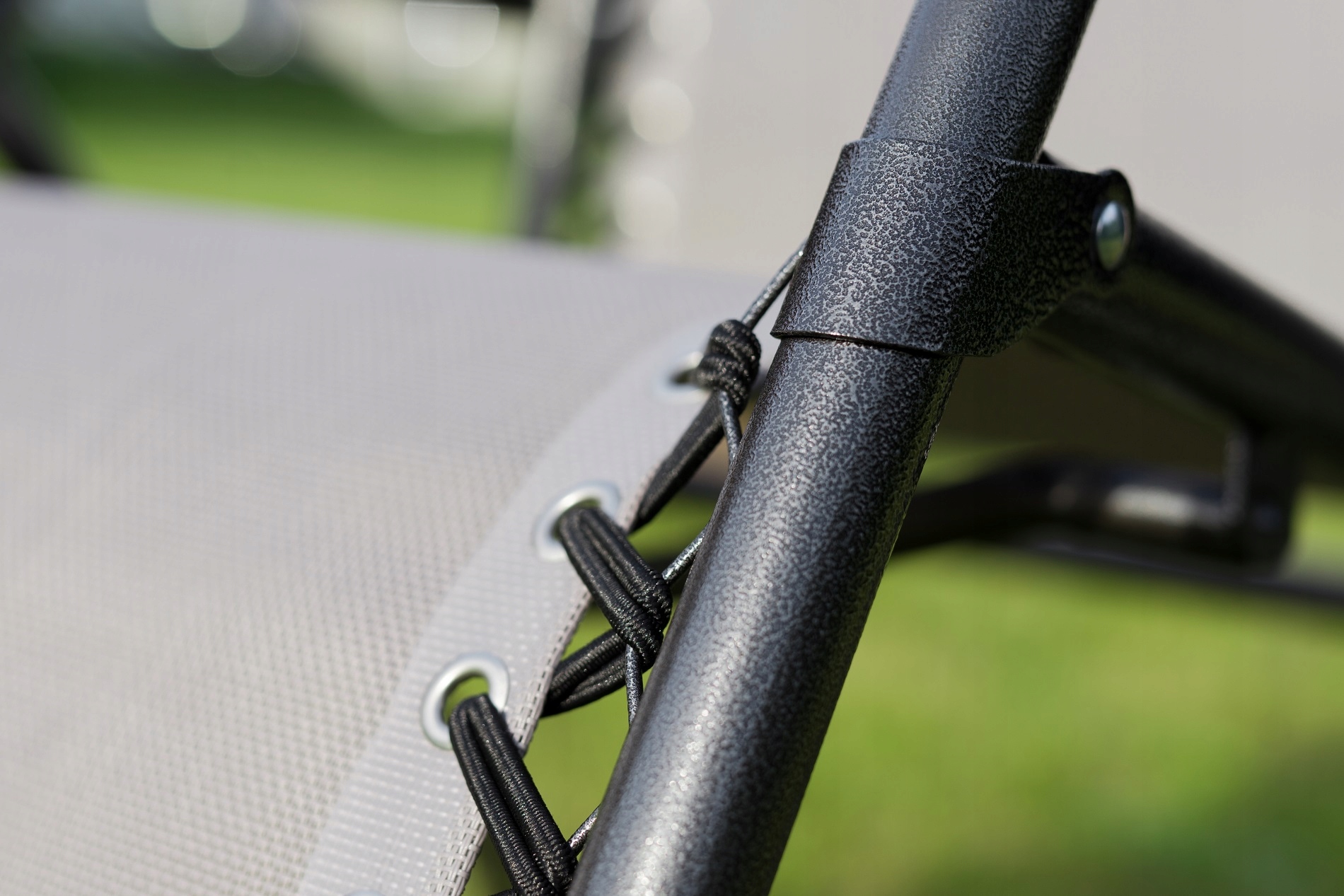 Значно зменшує тиск на хребет, заспокоює та розслабляє напружені м'язи. Шезлонг розроблений таким чином, що зігнуті ноги знаходяться на рівні серця. У такому положенні тіло відпочиває і набирається сил. Шезлонг характеризується безпекою, комфортом і зручністю.