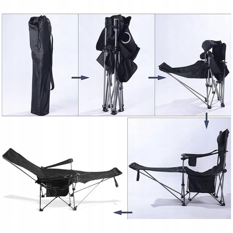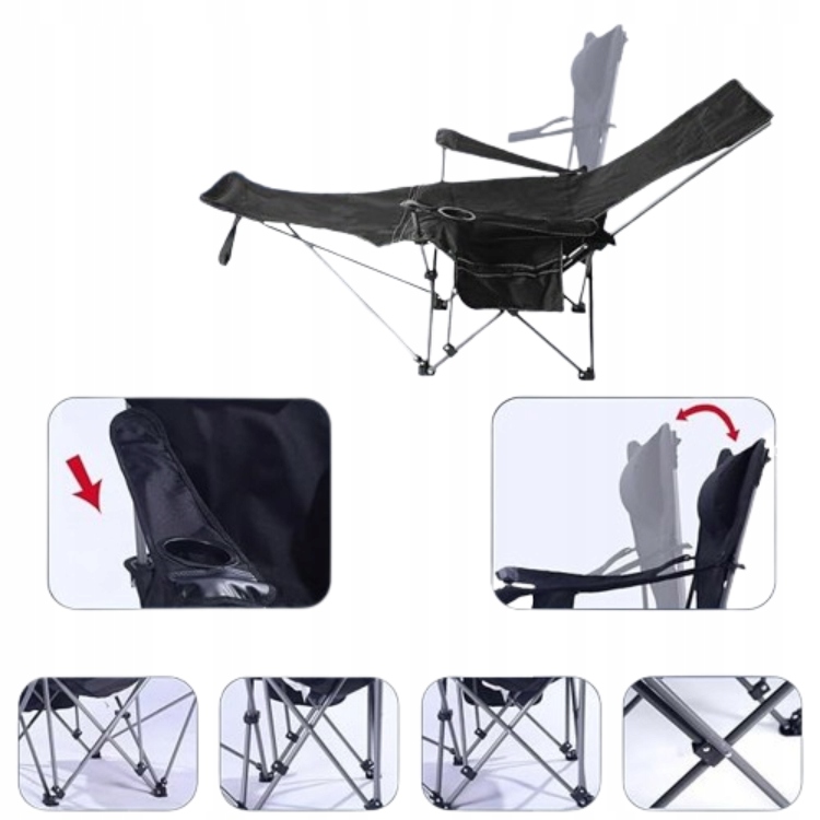 - Компактне, складне, портативне та легкетуристське крісло з функцією пристосування до шезлонга,