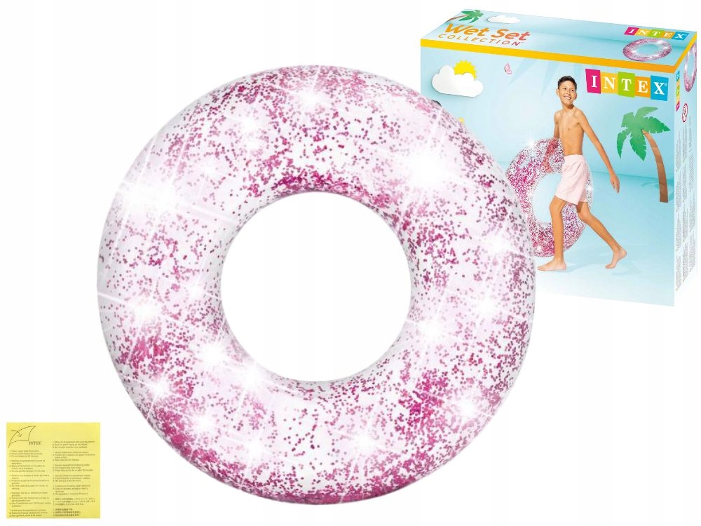 Кільце для плавання Intex виготовлено з міцного та довговічного вінілового матеріалу (ПВХ). Набір містить ремонтну латку для усунення незначних пошкоджень.