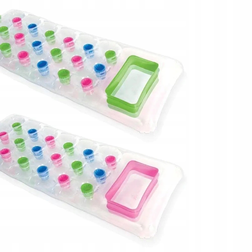 Матрац складається з двох накачаних камер і був виготовлений з суцільного пластику з ПВХ. Він має надувну подушку і дуже комфортно. Вертикальні трубки, що з'єднують верхню та нижню частину матраца, можна використовувати для подачі банок з напоями.
