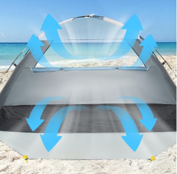 Внутрішня частина намету покрита сріблом для захисту від сонця, а водонепроникна поліестерова тканина 210T захищає від дощу. UPF 50+ блокує до 98% шкідливих ультрафіолетових променів, забезпечуючи захист протягом усього дня на пляжі.