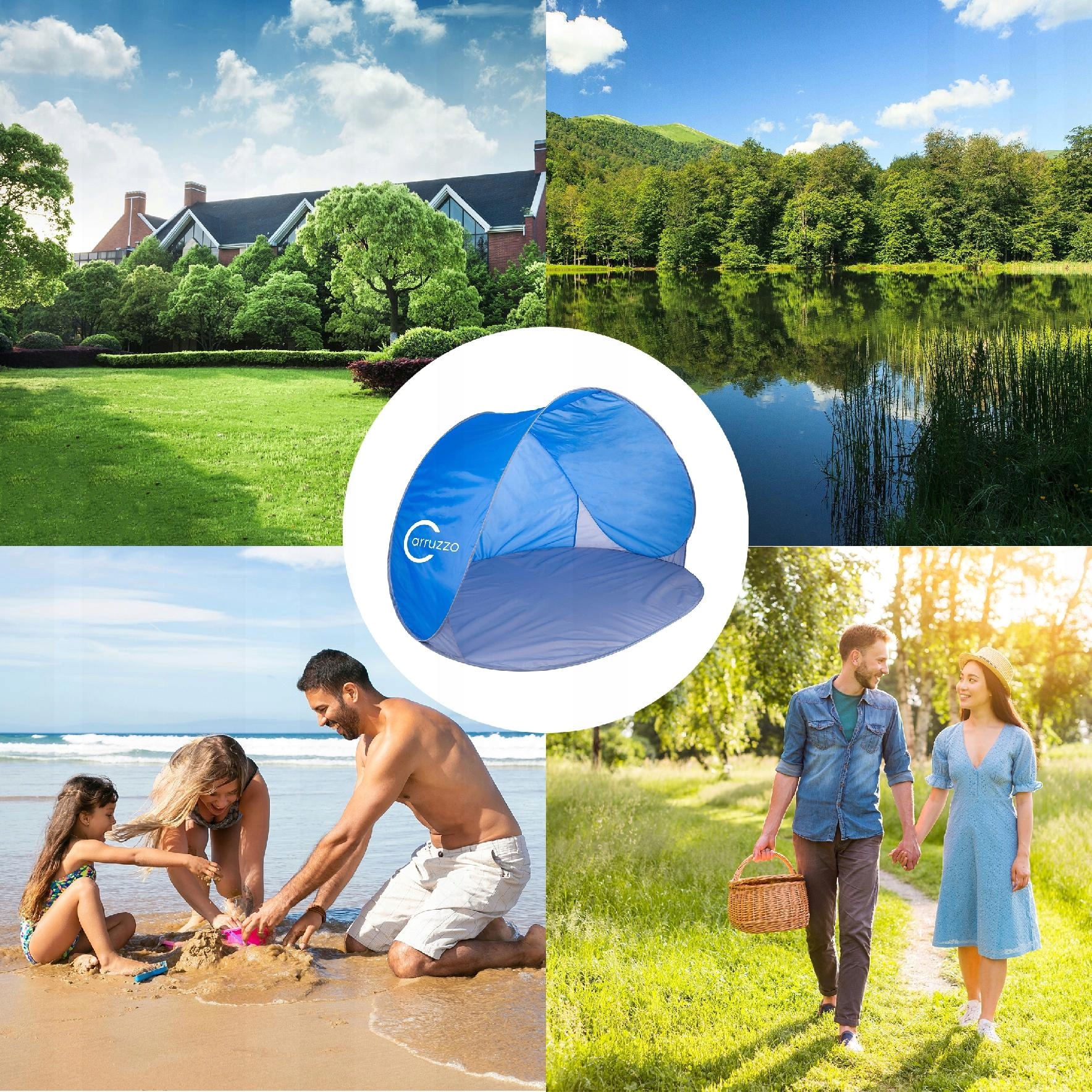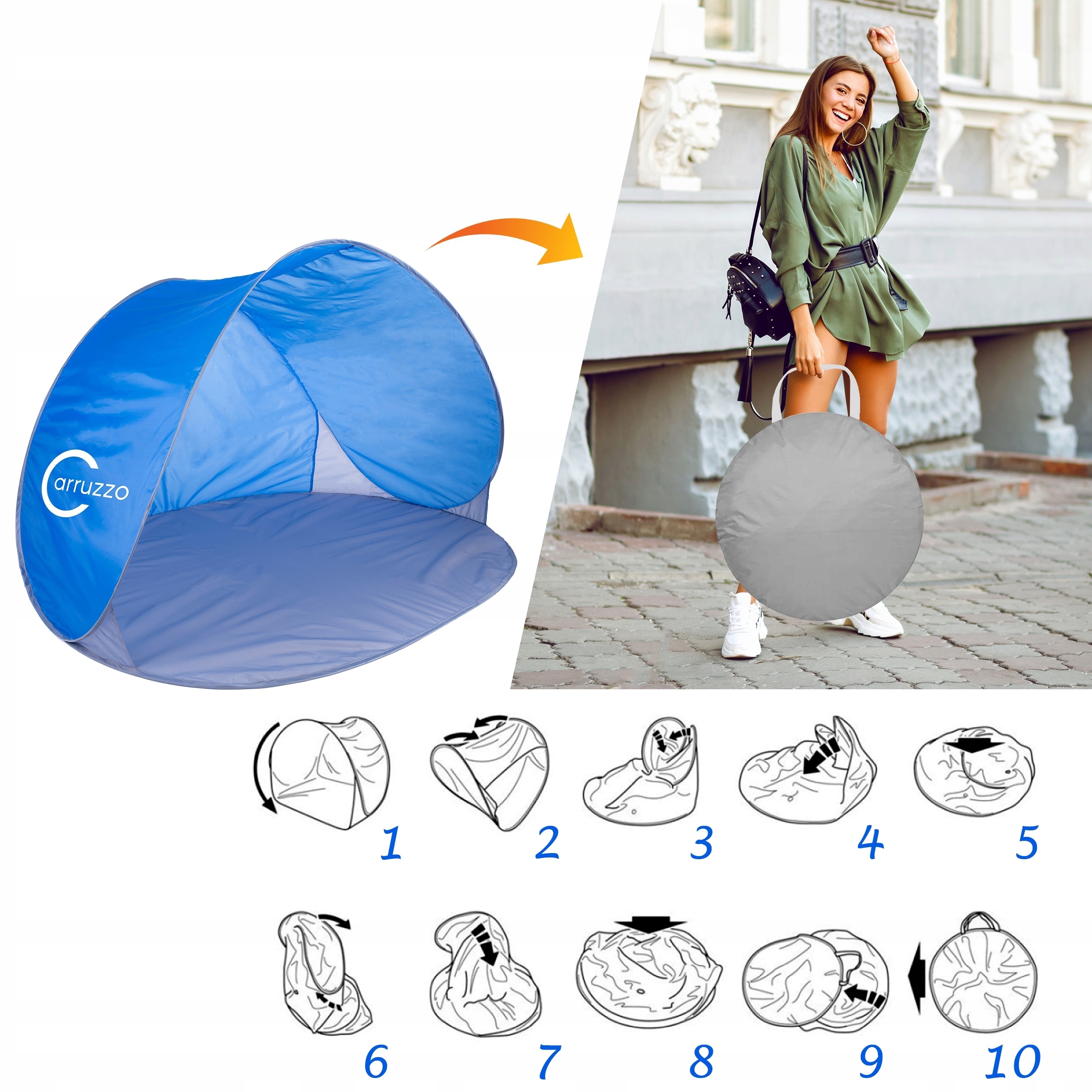 Пляжний намет призначений для використання під час відпочинку на пляжі, в саду, на ділянці тощо. Можливість швидкого складання (самоскладається).