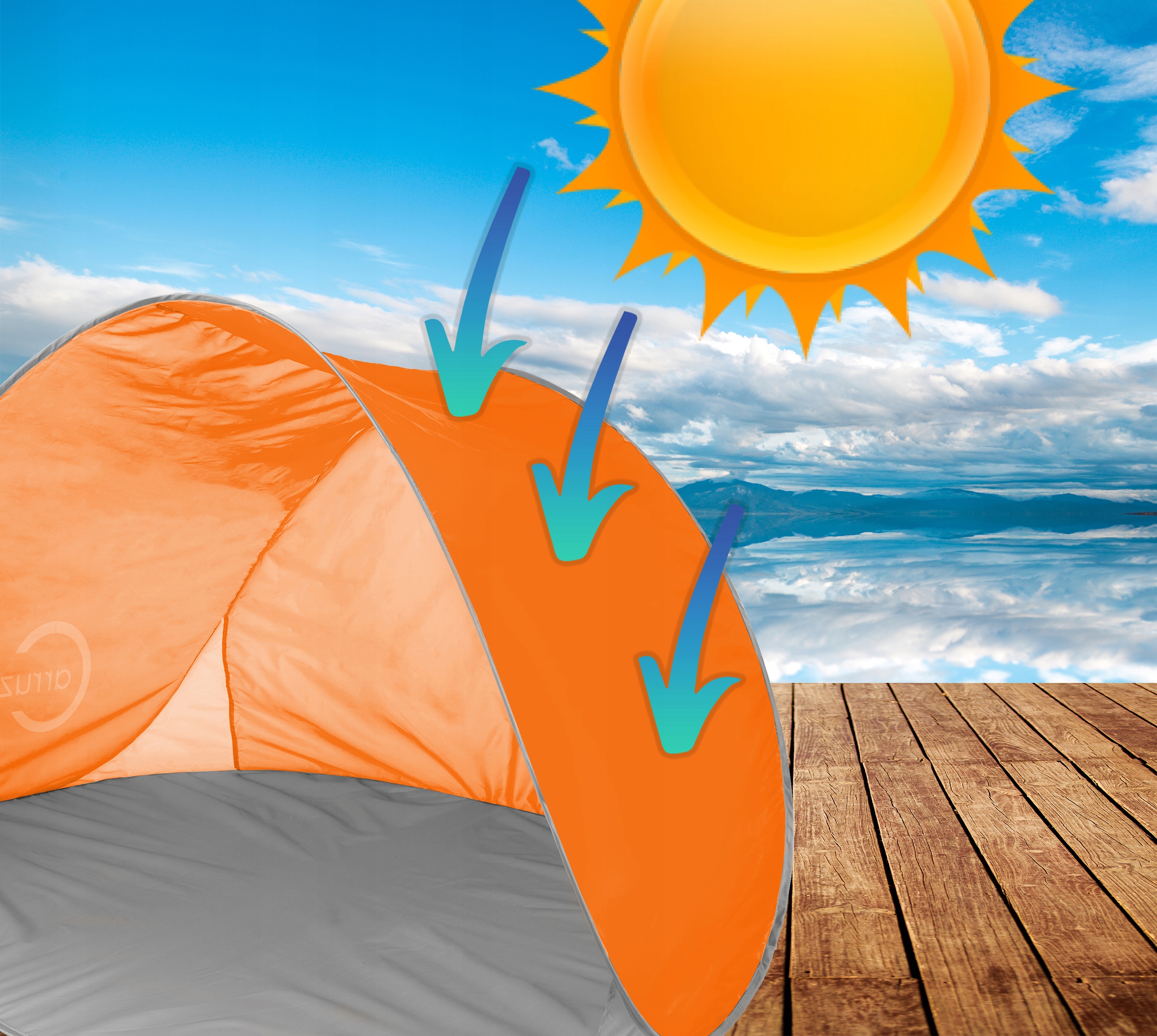 Захист від сонячних променів: Завдяки спеціальному покриттю намет відбиває сонячне світло, а також захищає від вітру. Це дуже важливо, особливо якщо ми йдемо на пляж з дітьми чи людьми похилого віку. Наш намет гарантує комфортне та безпечне перебування. Крім того, ви можете покласти туди свою сумку чи рюкзак, не турбуючись, що вони будуть покриті піском.