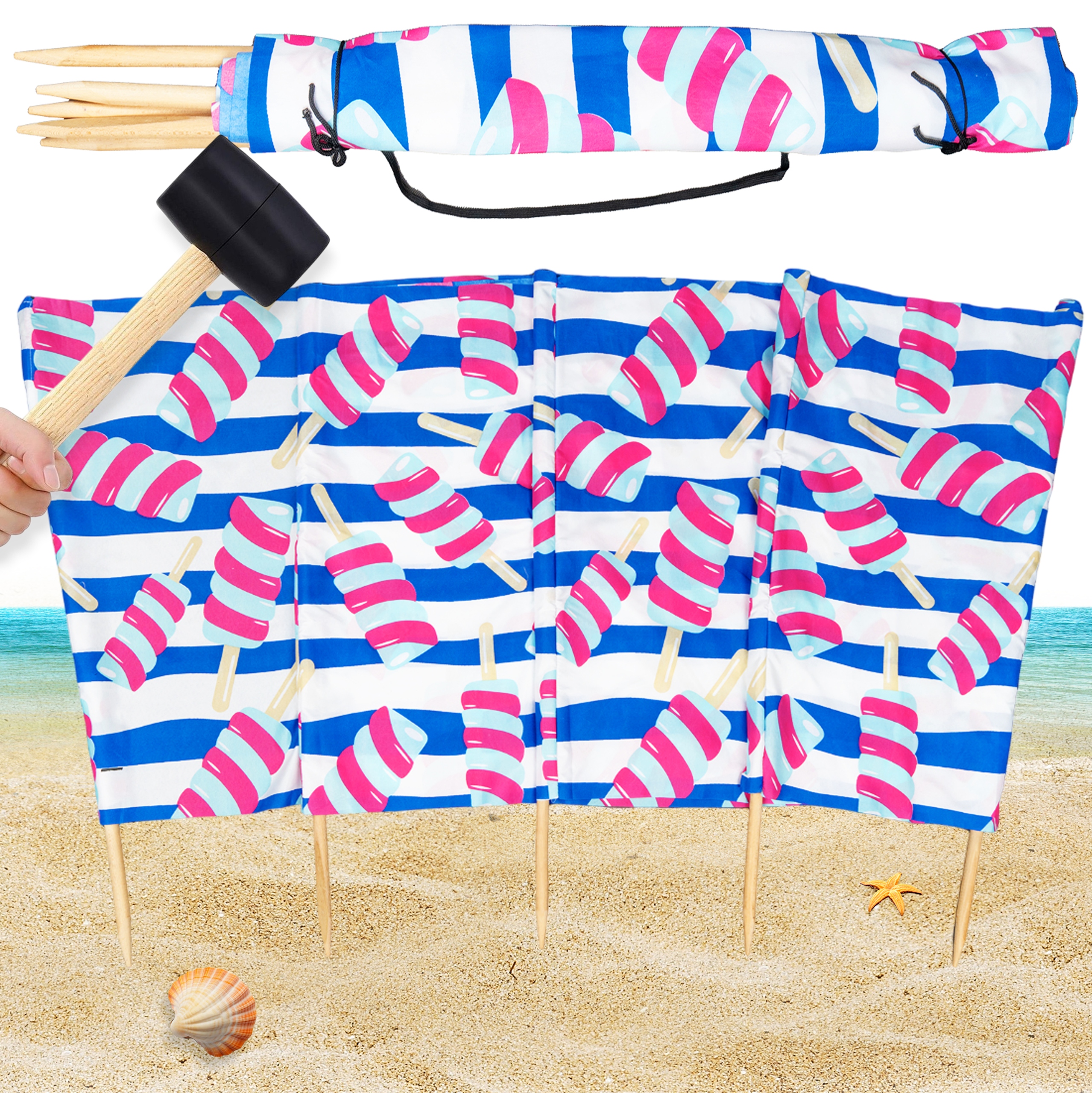 ПЛЯЖНИЙ ПАРАВАН ВЕЛИКИЙ ДЛЯ ПЛЯЖУ ПЛЯЖНА ШТОРА ПОЛЬСЬКИЙ ВИРОБНИК 8М + МОЛОТОК