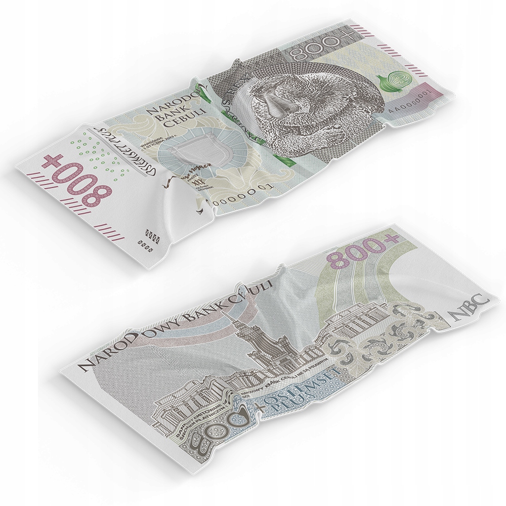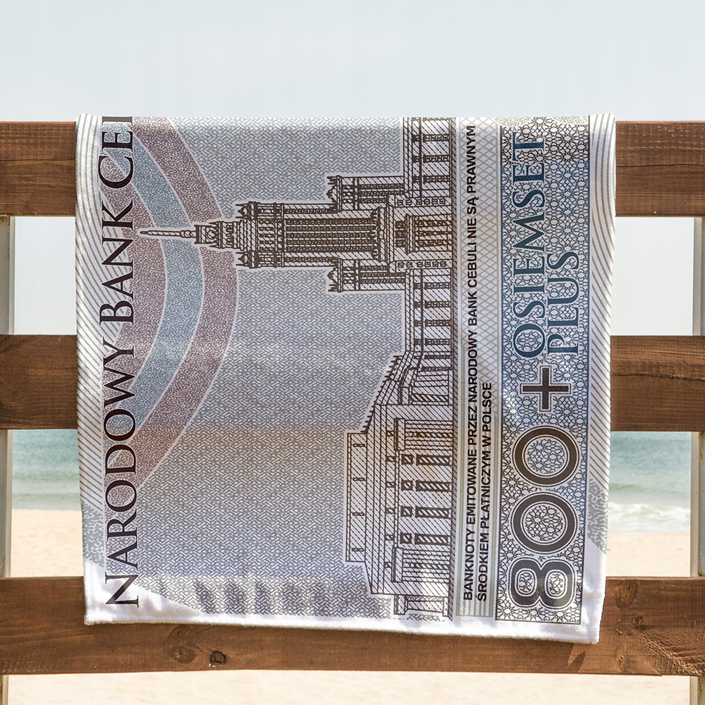 Рушник 800 plus був розроблений з акцентом на деталях, тому кожна людина, яка побачить цей рушник, неодмінно буде здивована. Рушник має дві сторони, на аверсі зображено хоботну мавпу, а на другій стороні – Палац культури. Рушник розроблено на основі банкноти номіналом 500 злотих.