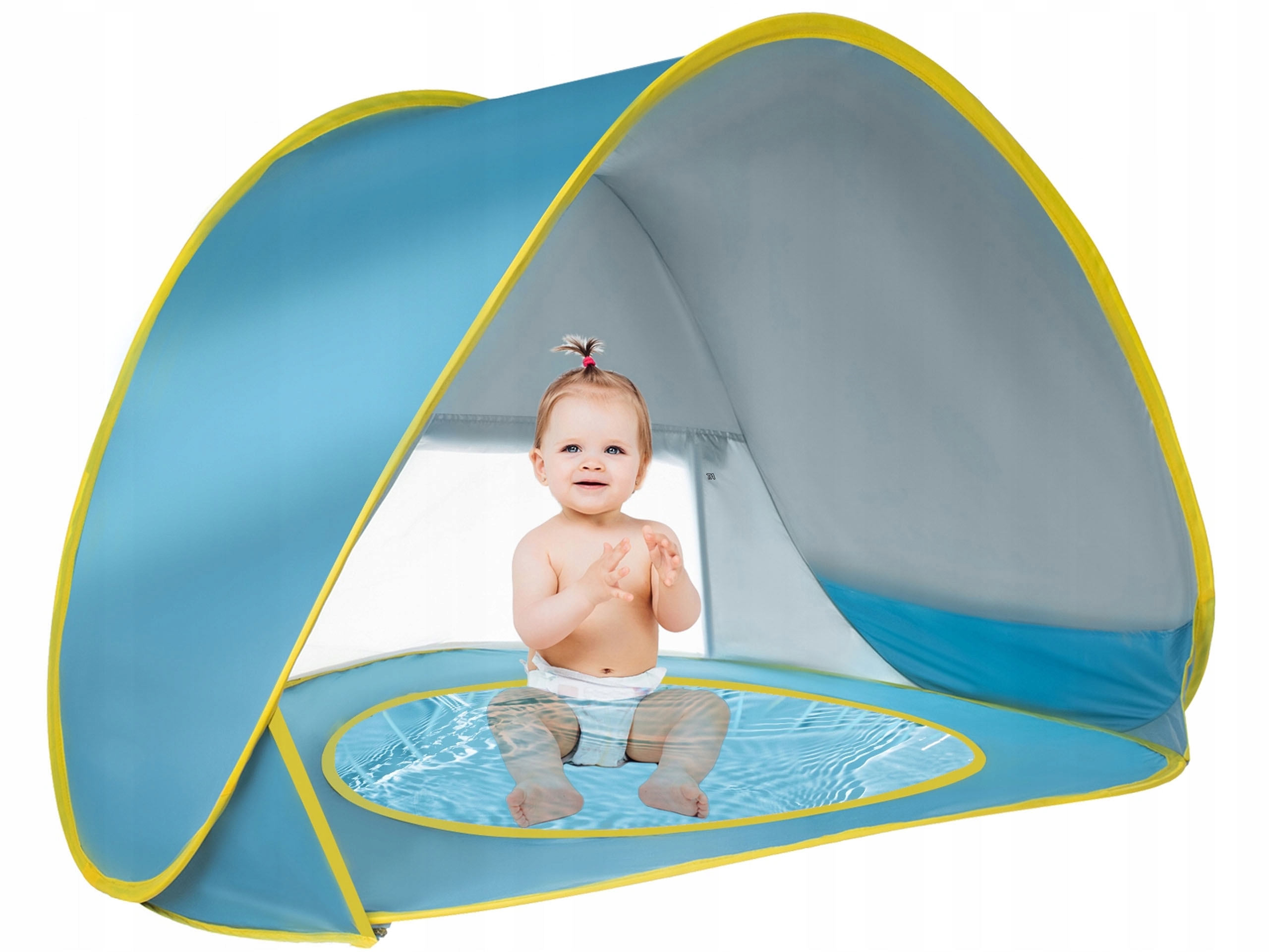 Напіввідкритий пляжний намет POP UP з басейном - це ідеальне поєднання парасольки та ширми з басейном, але він набагато зручніший у використанні та займає набагато менше місця, що, як ми знаємо , важливий при пакуванні багажу. Захищає від вітру та надмірного сонця. Це важливо, якщо ви йдете на пляж з дітьми і хочете забезпечити їм безпечний відпочинок. Басейн вбудований у дно намету. Просто викопайте яму, налийте води, і ваша дитина зможе хлюпатися.
