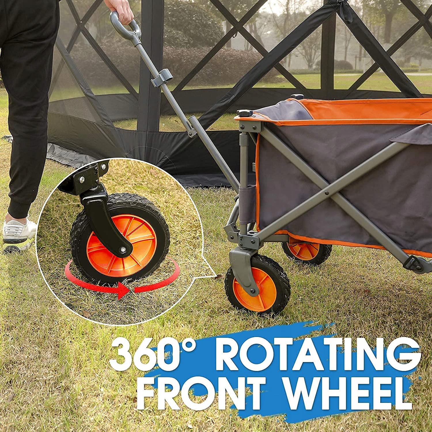 - Широке застосування: візок ідеально підходить для транспортування набору садових інструментів, пляжних парасольок, аксесуарів для кемпінгу та інших важких вантажів. Коляску можна широко використовувати для активного відпочинку на природі, наприклад, для кемпінгу, пляжу, спортивних заходів або просто вдома.