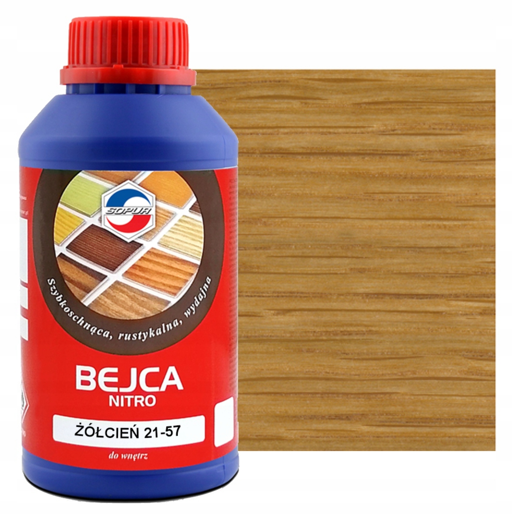 призначена для фарбування хвойної та листяної деревини, особливо для дуба, золи та сосни. Він підкреслює і зміцнює креслення деревного зерна, даючи сільський ефект. Він характеризується коротким часом сушіння, дуже хорошими випаровами та однорідністю. Дерев’яне для фарбування повинно бути чистим, належним чином шліфованим абразивним грануляцією 150-220 (залежно від видів деревини) та без пилу та смолистих плям.