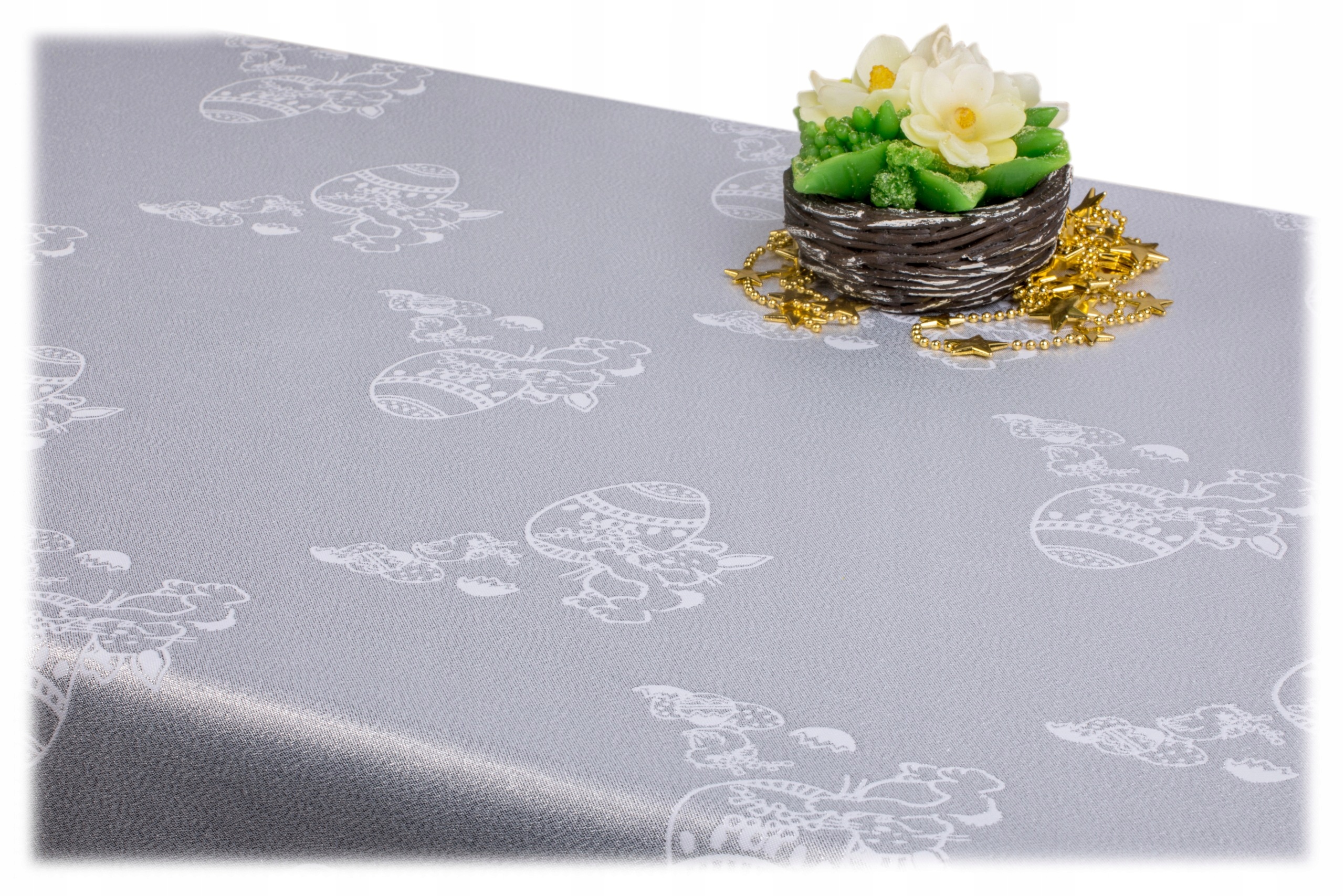 Скатертина плямостійка ДВОСТОРОННЯ 130х300 см - ВЕДМІДЬ срібло