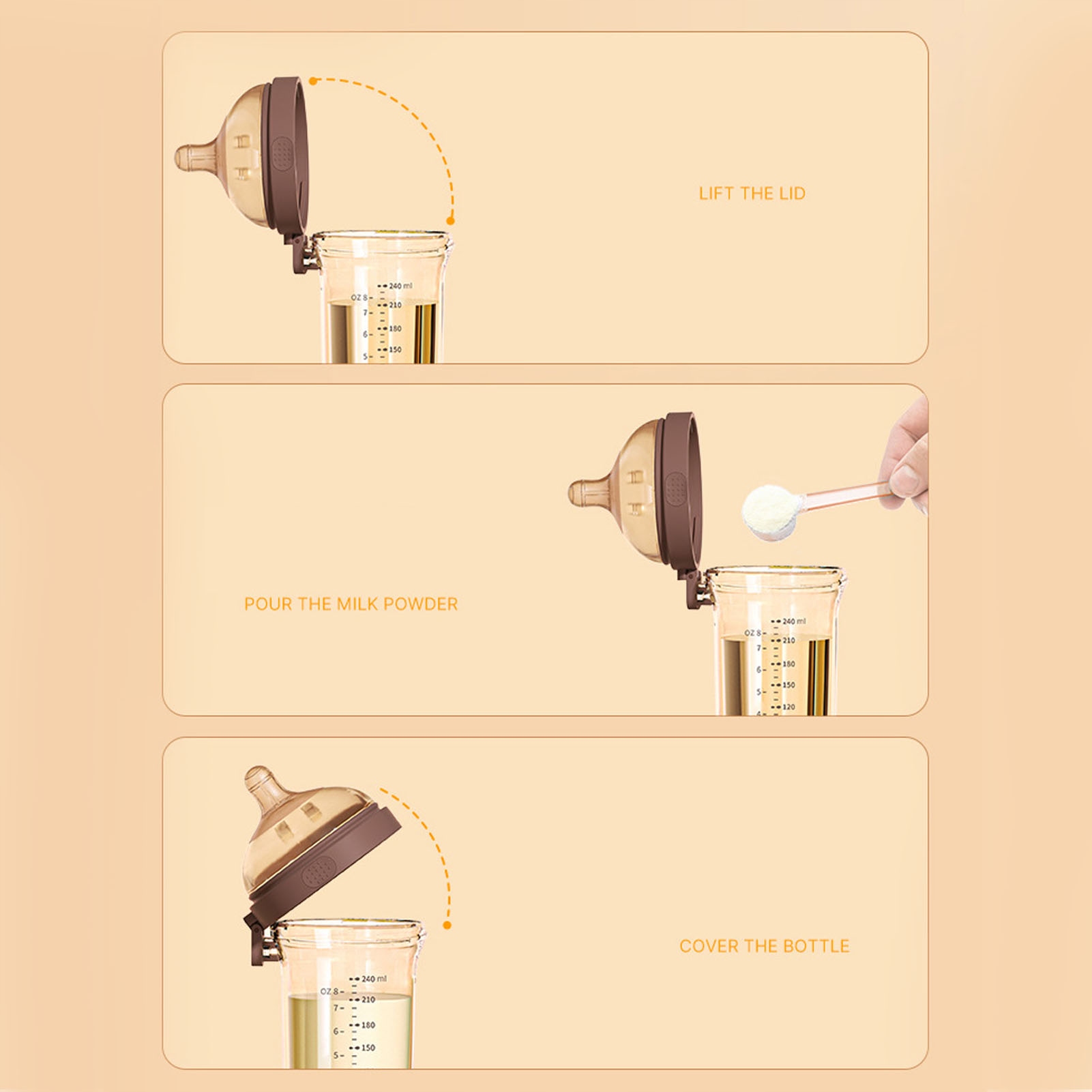 5. БЕЗПЕЧНА ТА ДОВГОВІЧНА: розроблена спеціально для немовлят пляшечка виготовлена з матеріалів, що запобігають падінню, що ефективно мінімізує ризик стукання пляшки, забезпечуючи тривале використання.