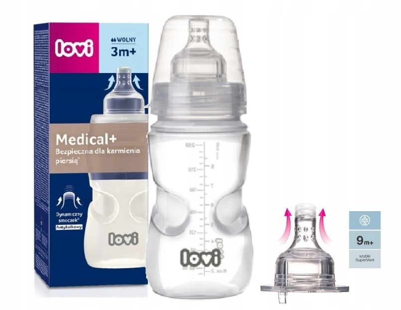 Пляшечка LOVI MEDICAL+ 250 мл + соска 3м+ + соска 9+ Бонус