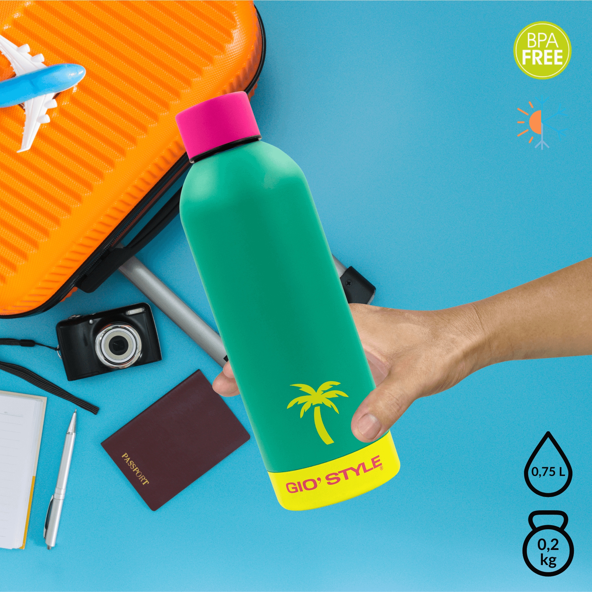Пляшка стилю Kamai Gio - це справжній шедевр італійського дизайну , цінується у всьому світі для надзвичайної якості та естетики. Він зроблений з увагою до кожної деталі, що робить його не лише практичним, але й надзвичайно стильним . Елегантна палітра кольорів та висококласні матеріали роблять пляшку виділитись від інших. Це ідеальний вибір для тих, хто цінує продукти, що поєднують красу з функціональністю - довговічним, твердим і в той же час прекрасно представляють як у місті, так і в дорозі.