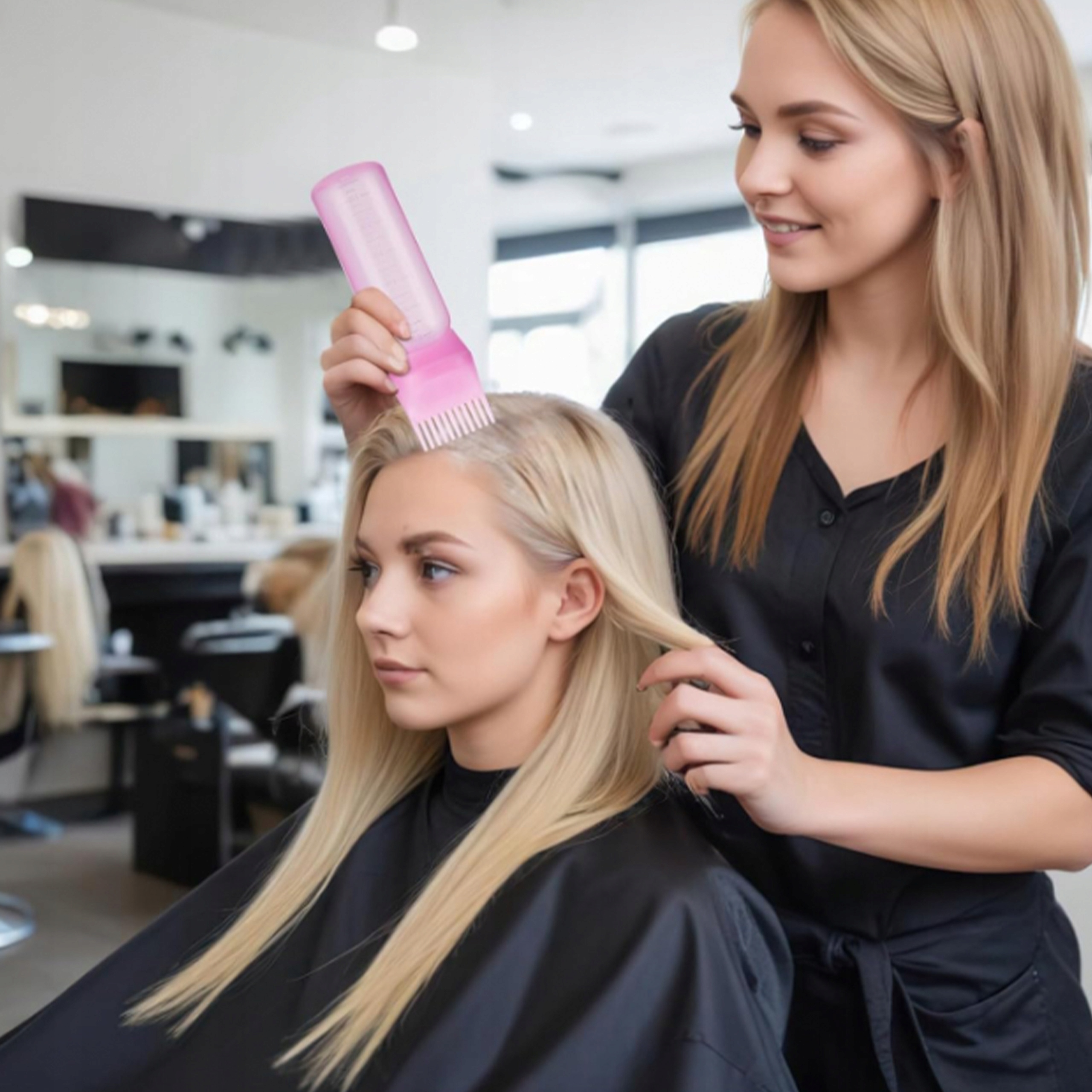 Ви мрієте про точне та зручне застосування фарби, кондиціонера чи олії на волоссі? Наша пляшка з побудованою гребінцем -це інноваційне рішення, яке зробить догляд за волоссям та забарвленням бути легким, швидким та приємним!