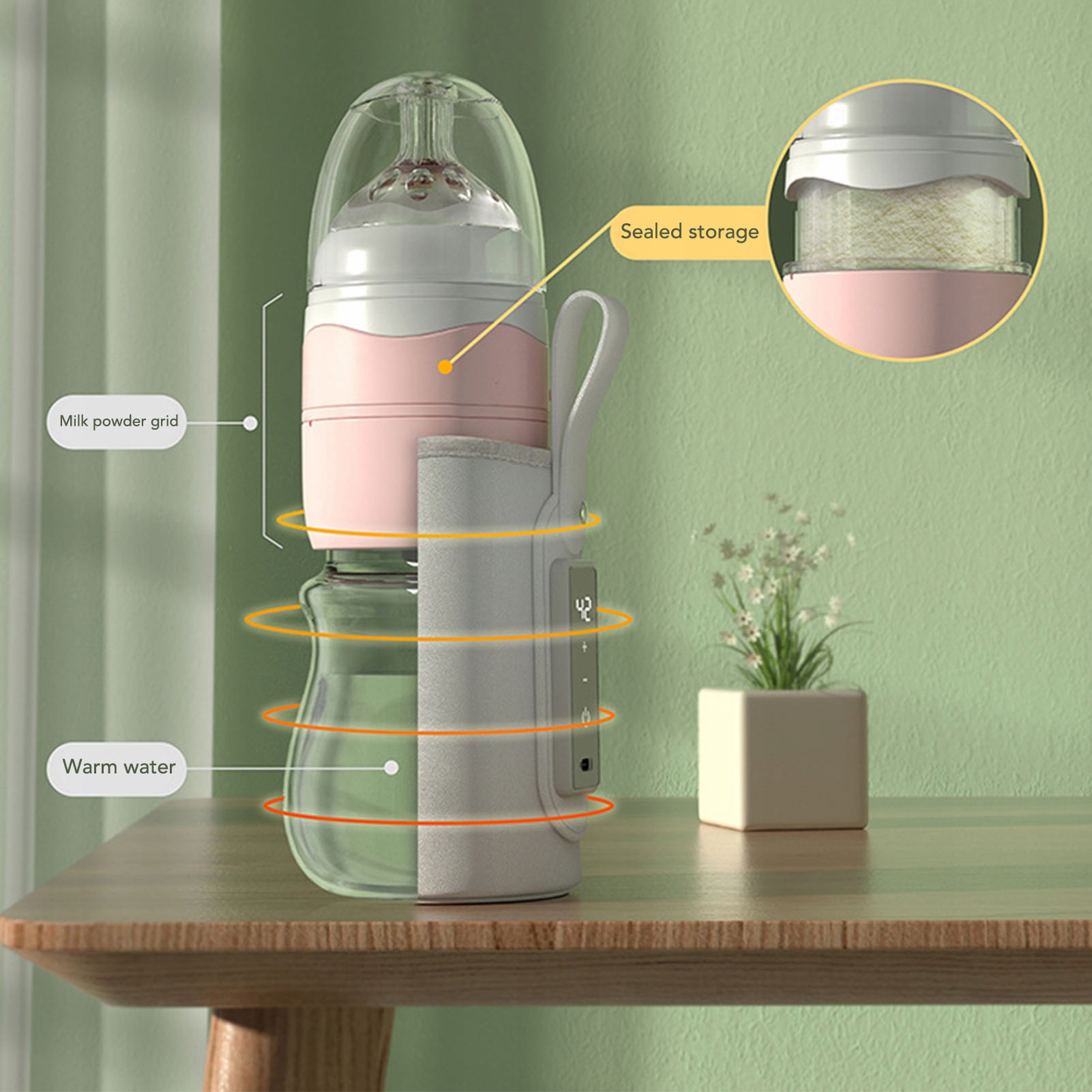 2. Портативний: поверніть пляшку на 1 секунду, замочіть молоко на 3 секунди. Можна використовувати з ізоляційним пакетом для пляшок, завдяки cz діти можуть пити гаряче молоко в будь-який час і в будь-якому місці.