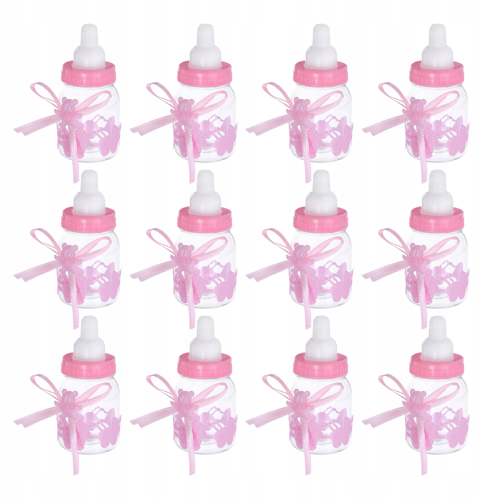 ✅, проведених з пластику, ці контейнери для пляшок для немовлят багаторазового начинки легкі та легко захоплюються. Їх прозорий дизайн дозволяє бачити вміст, що робить їх ідеальними для представлення барвистих цукерок або невеликих подарунків. Деталі стрічки збільшують їх декоративну привабливість, завдяки якому вони підходять для прихильності до вечірок або прикрас для столу.