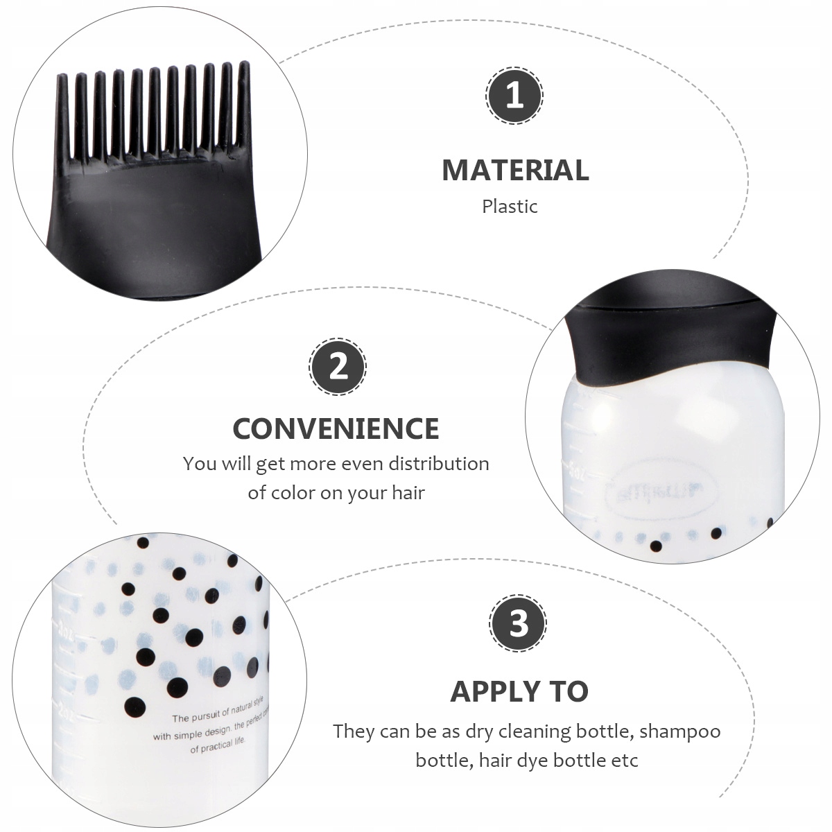 ✅ Ці пляшки для волосся виготовлені з пластику, міцні та практичні. Просто наповніть пляшку фарбою попередньо змішаним барвником волосся, і фарба протікає через голову. Тоді вам буде легко користуватися ними. Найкращий, простий і найчистіший спосіб нанести барвник волосся безпосередньо на волосся.
