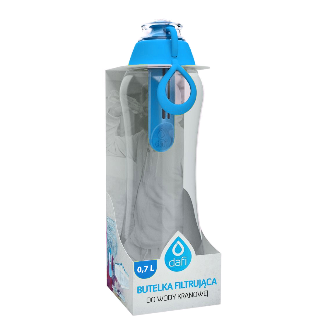 Зручні багаторазові пляшки з фільтром Dafi оснащені змінним фільтром, який усуває смак і запах хлору з водопровідної води. Натуральне активоване вугілля, що міститься в ньому, отримують зі шкаралупи кокосового горіха. Пляшки з фільтром безпечні для здоров'я, що підтверджено систематичнимитестами та отриманими сертифікатами. Пляшка з фільтром Soft 0,7 л ідеально підходить для спортзалу або під час тривалих подорожей.