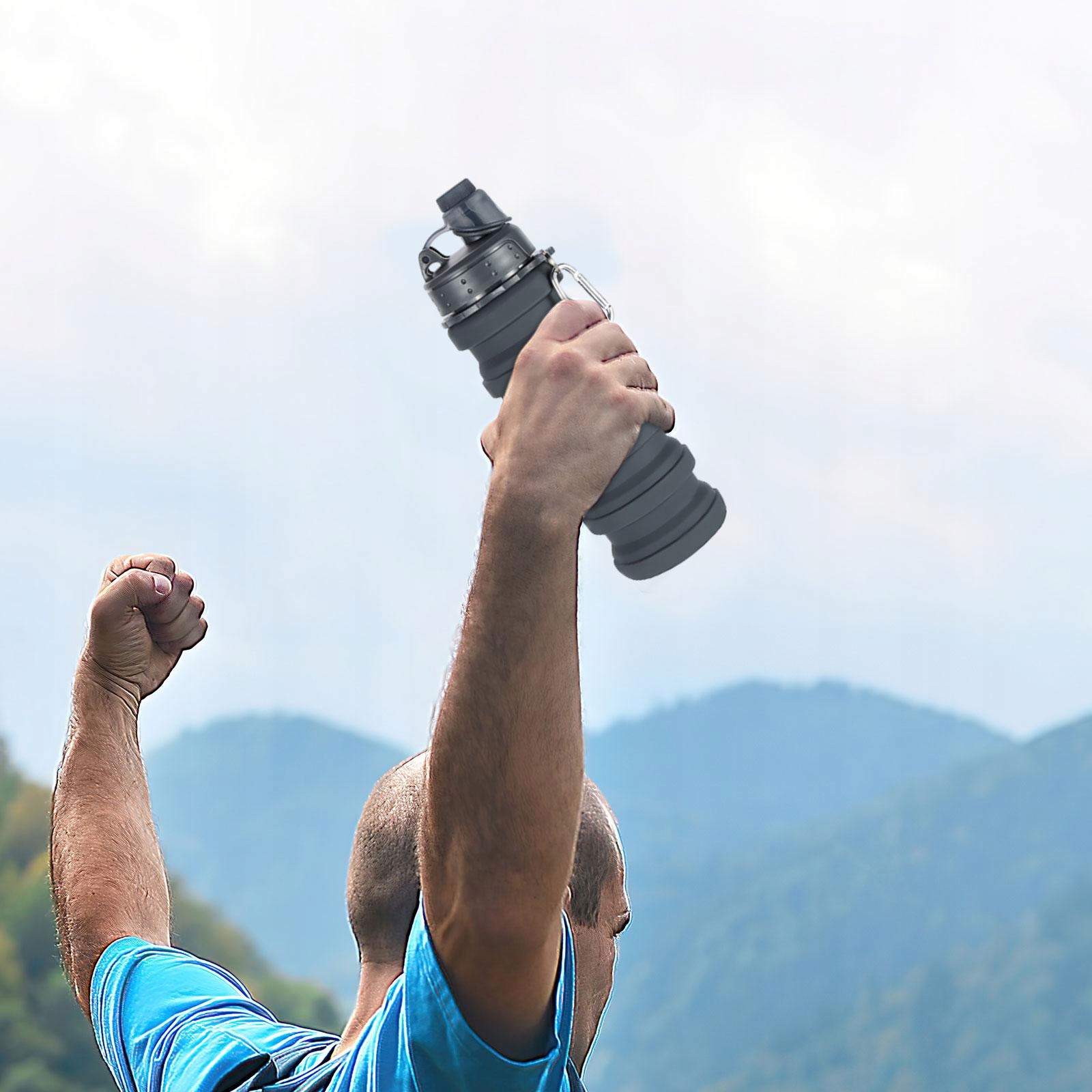 [Креативний дизайн]: ця портативна пляшка з водою має багатошаровий дизайн, який можна скласти. Зовнішня пляшка для води об’ємом 500 мл забезпечує тривале зволоження під час подорожі чи активного відпочинку.