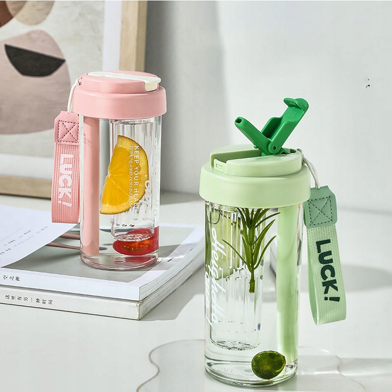 Пляшка для води без тритану з соломинкою для фруктового чаю